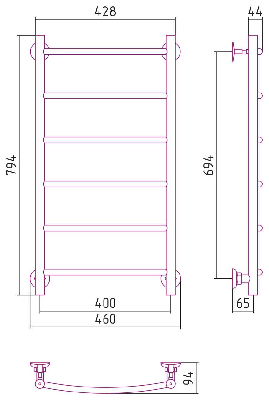 Полотенцесушитель водяной Стилье Версия-Н2 800х400 (6) Г 18 черный (17622-8040)