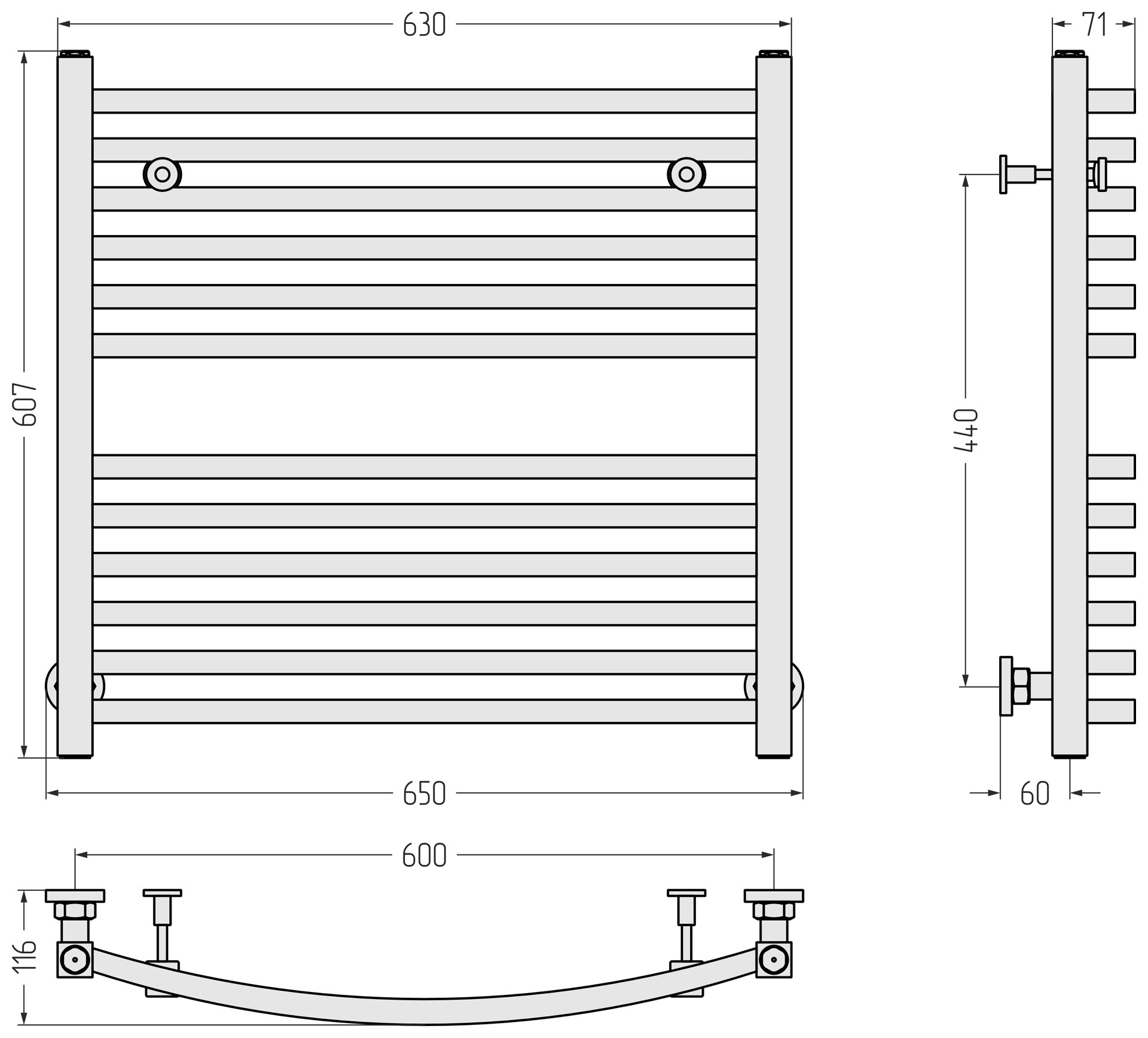 Полотенцесушитель водяной Сунержа Аркус 600x600 матовый черный (31-0251-6060)