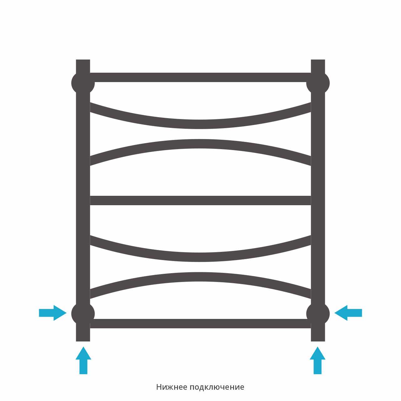 Комплектация: Полотенцесушитель - 1 шт., гайка накидная G 1" (несъемная) - 2 шт., силиконовая прокладка G 1" - 2 шт., кронштейн - 1 к-т., ключ ШГ №2,5 - 1 шт., паспорт., упаковка