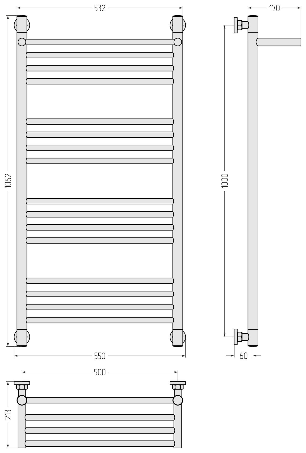 Полотенцесушитель водяной Сунержа Богема 1 П + Да 1000x500 матовый белый (30-0223-1050)