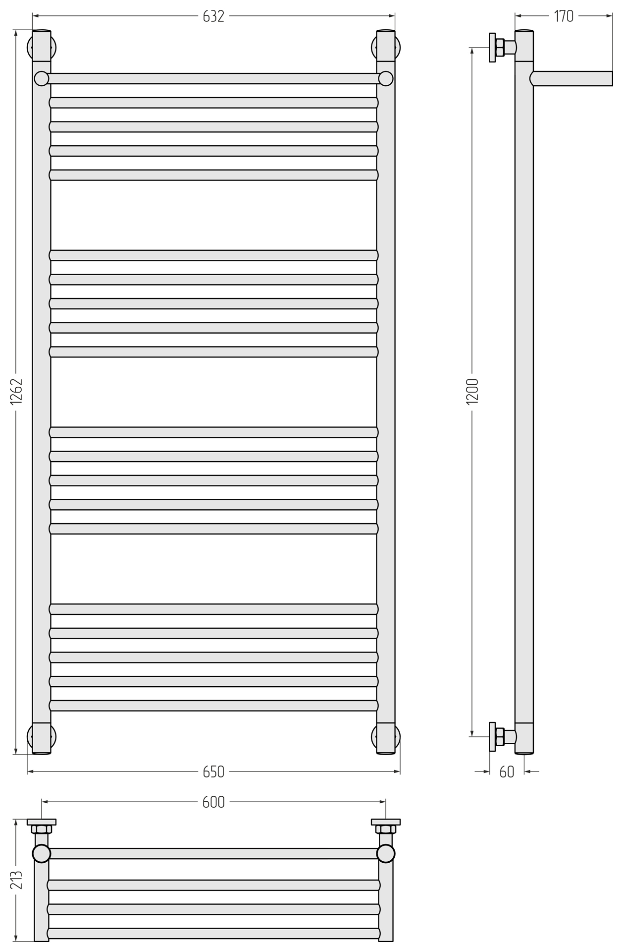 Полотенцесушитель водяной Сунержа Богема 1 П + Да 1200x600 матовый черный (31-0223-1260)
