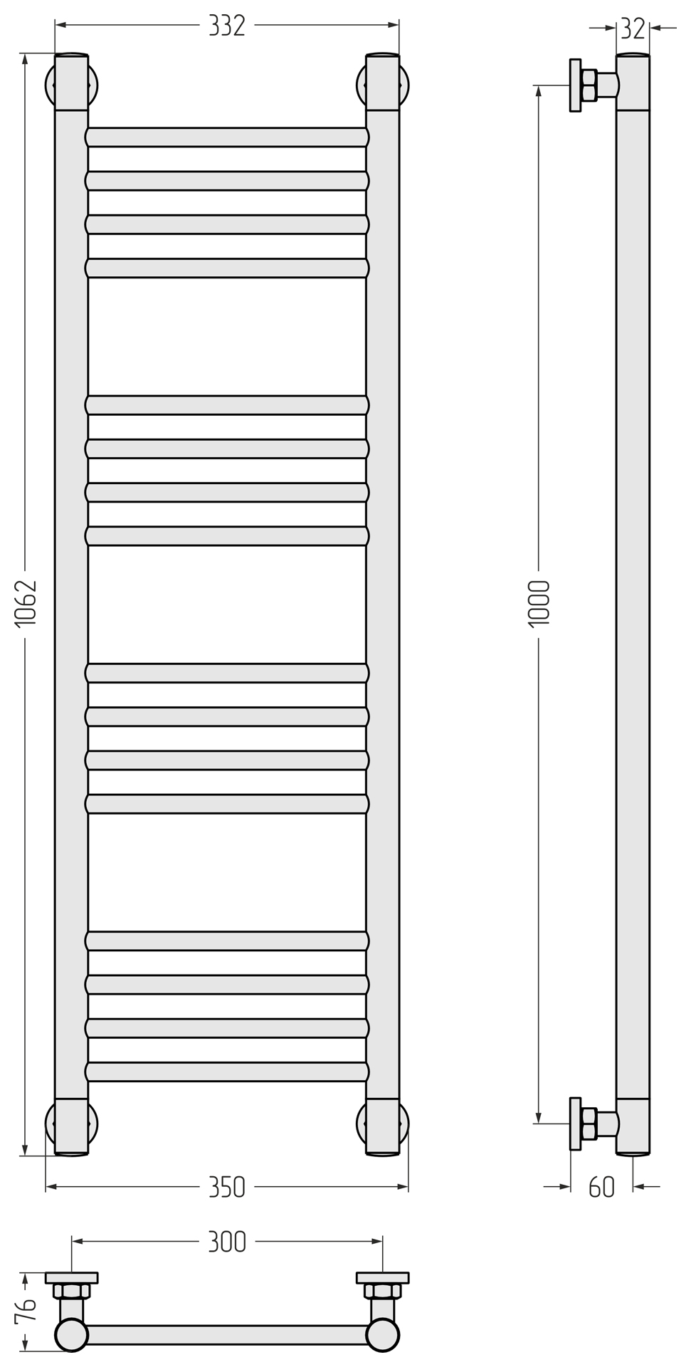 Полотенцесушитель водяной Сунержа Богема + 1000x300 матовый белый (30-0220-1030)