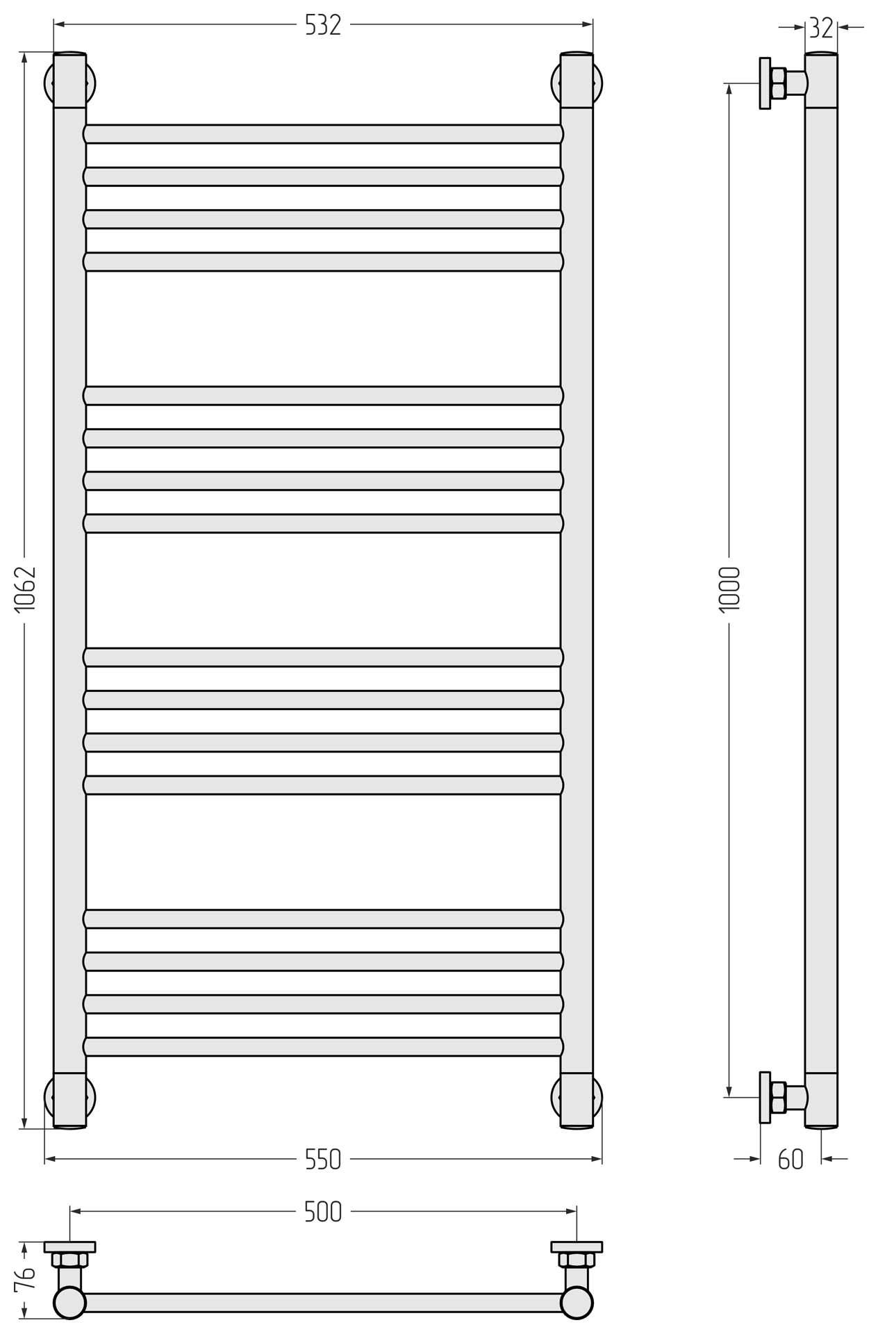 Полотенцесушитель водяной Сунержа Богема + 1000x500 матовый белый (30-0220-1050)