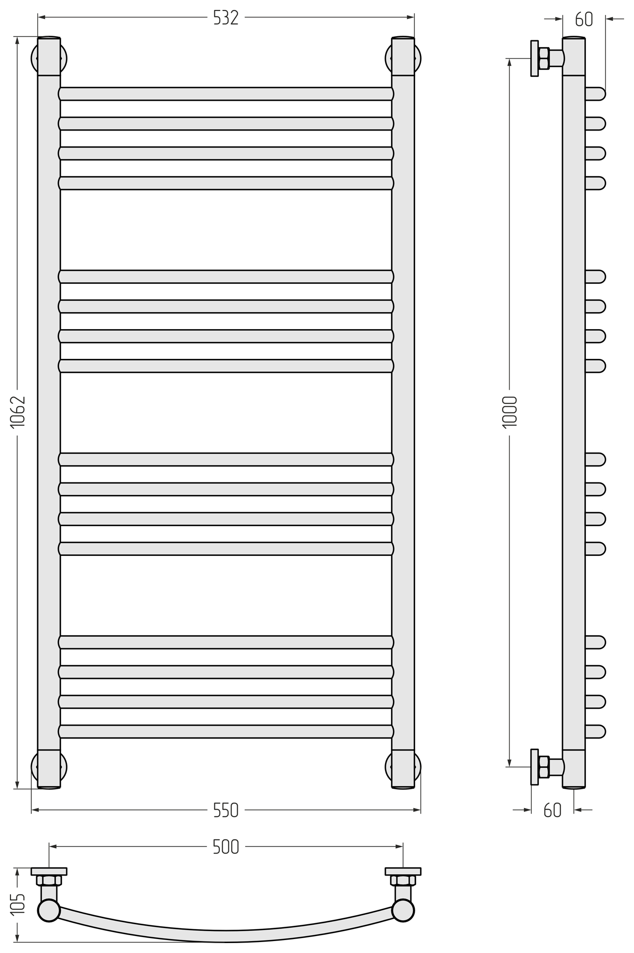 Полотенцесушитель водяной Сунержа Богема + 1000x500 матовый белый (30-0221-1050)