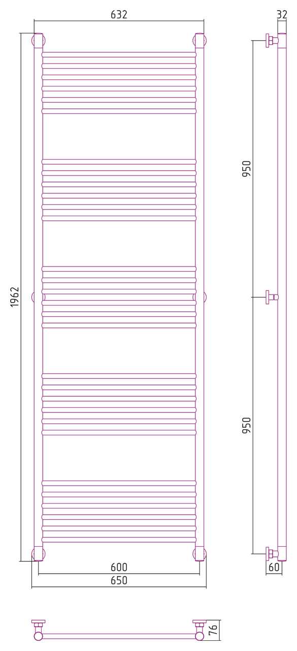 Полотенцесушитель водяной Сунержа Богема+ прямая 1900х600 белый (12-0220-1960)