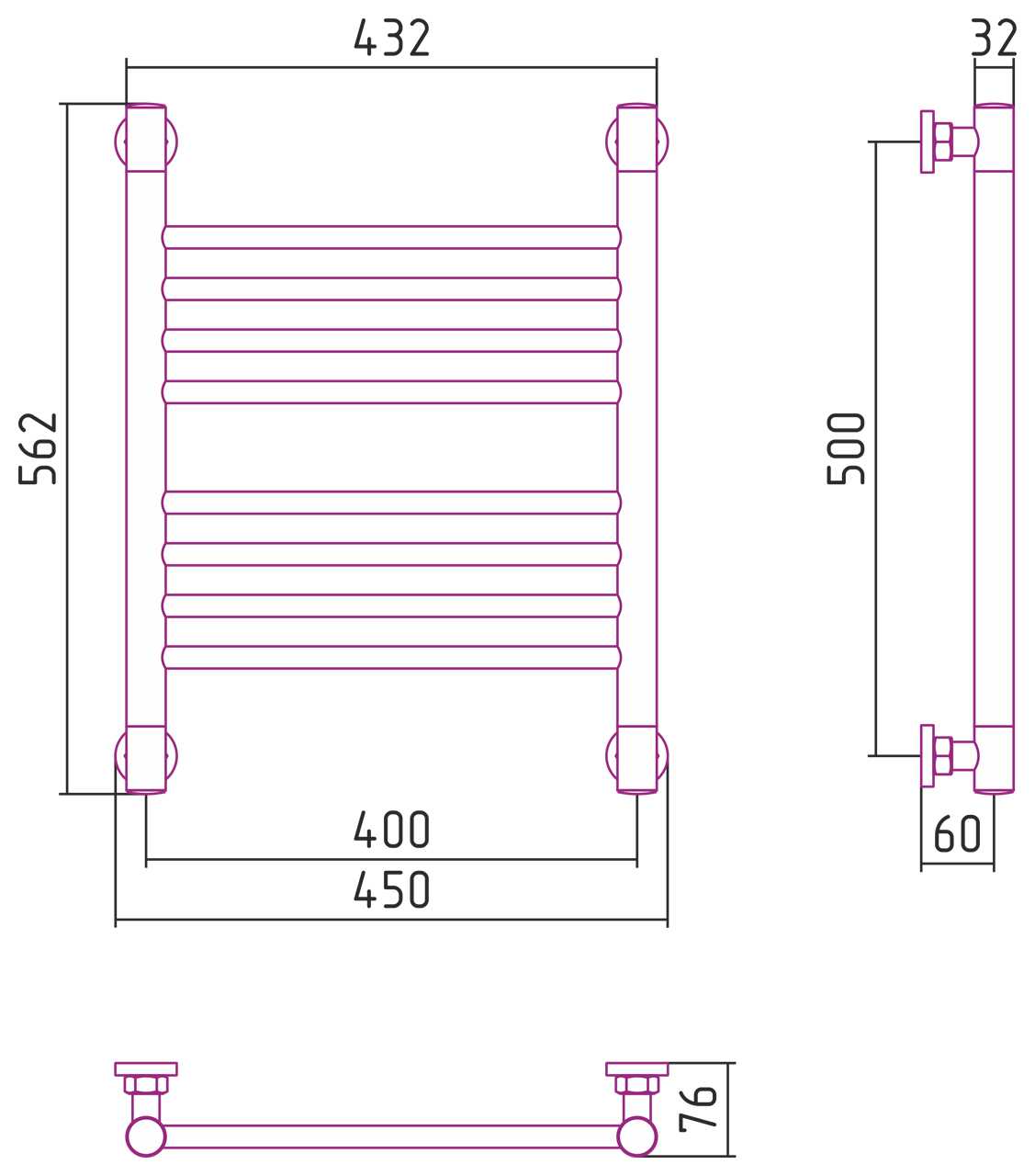 Полотенцесушитель водяной Сунержа Богема+ прямая 500х400 хром (00-0220-5040)
