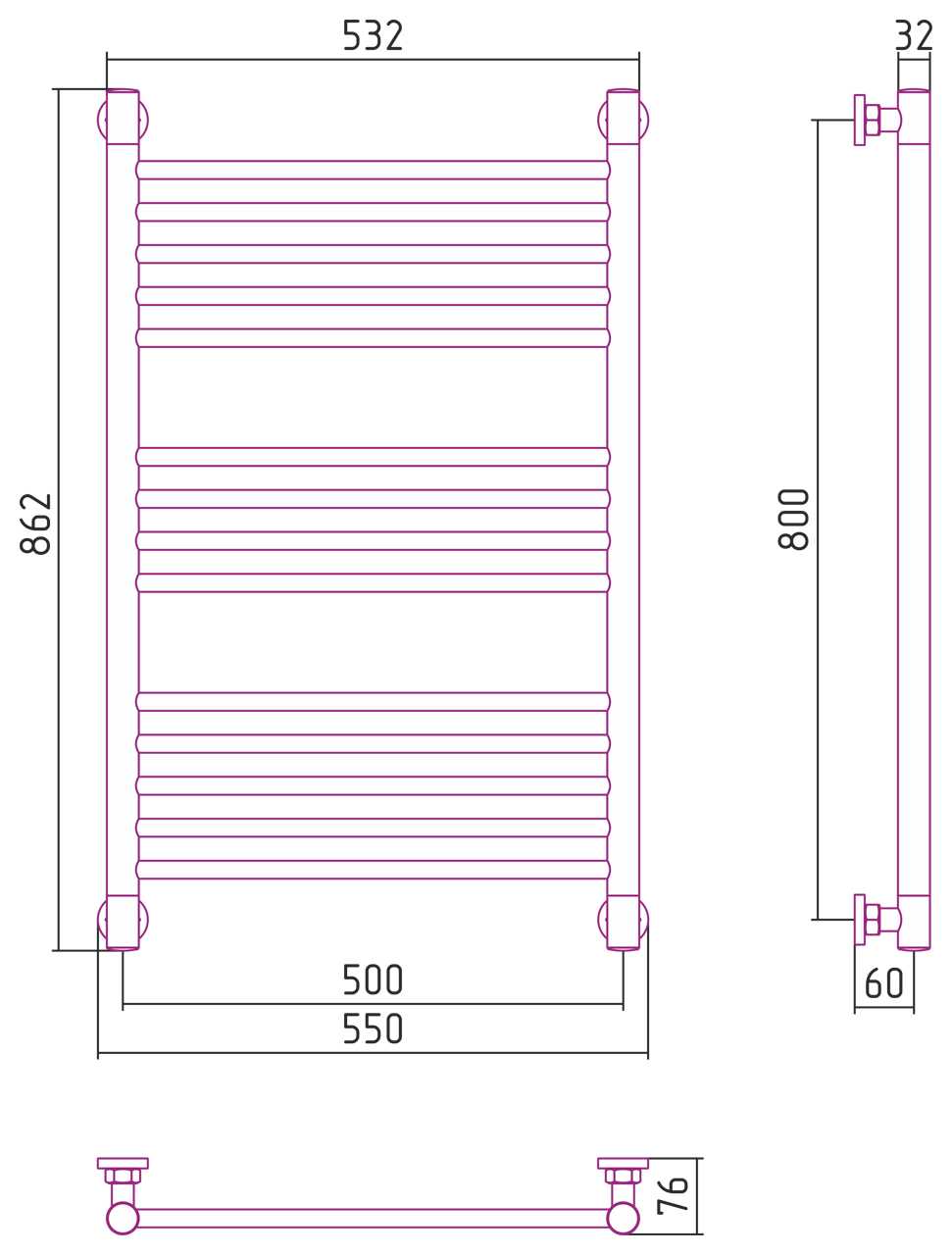Полотенцесушитель водяной Сунержа Богема+ прямая 800х500 хром (00-0220-8050)