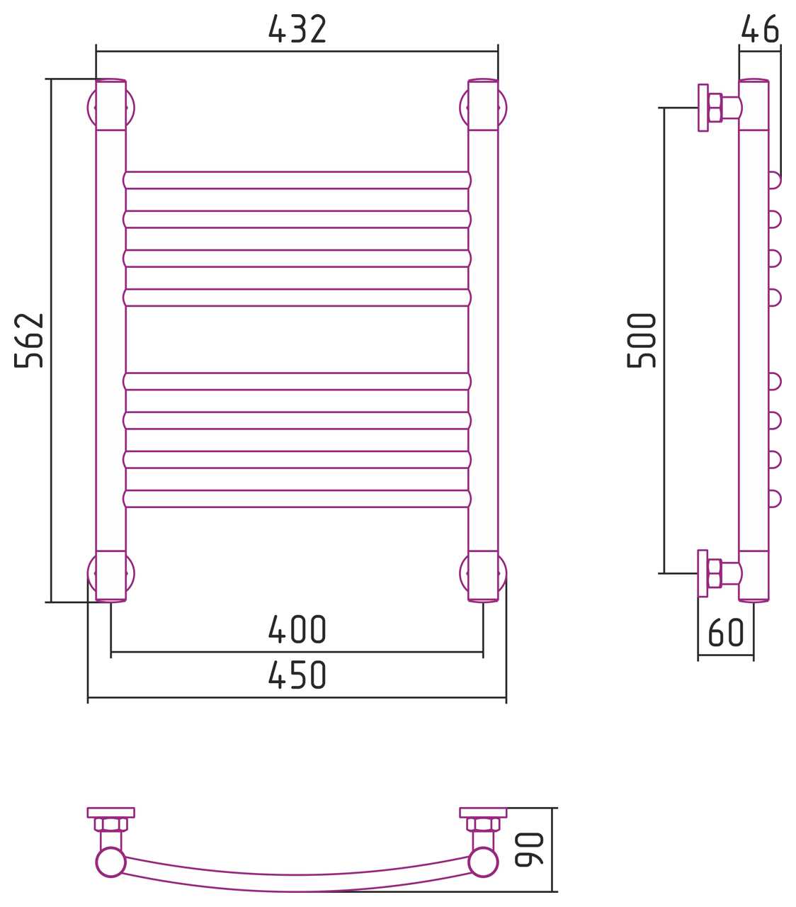 Полотенцесушитель водяной Сунержа Богема+ выгнутая 500х400 хром (00-0221-5040)