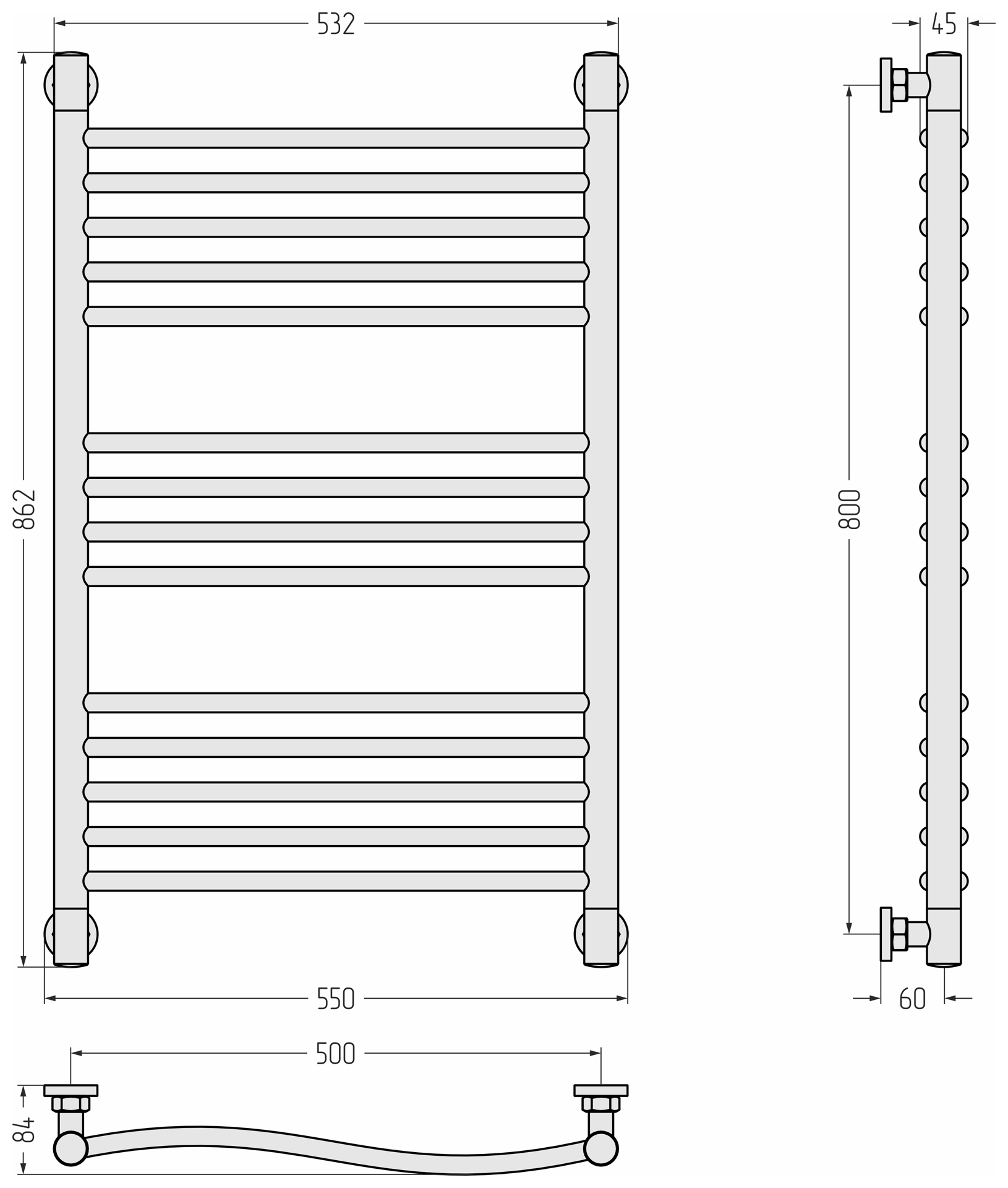 Полотенцесушитель водяной Сунержа Флюид+ 800x500 матовый черный (31-0222-8050)