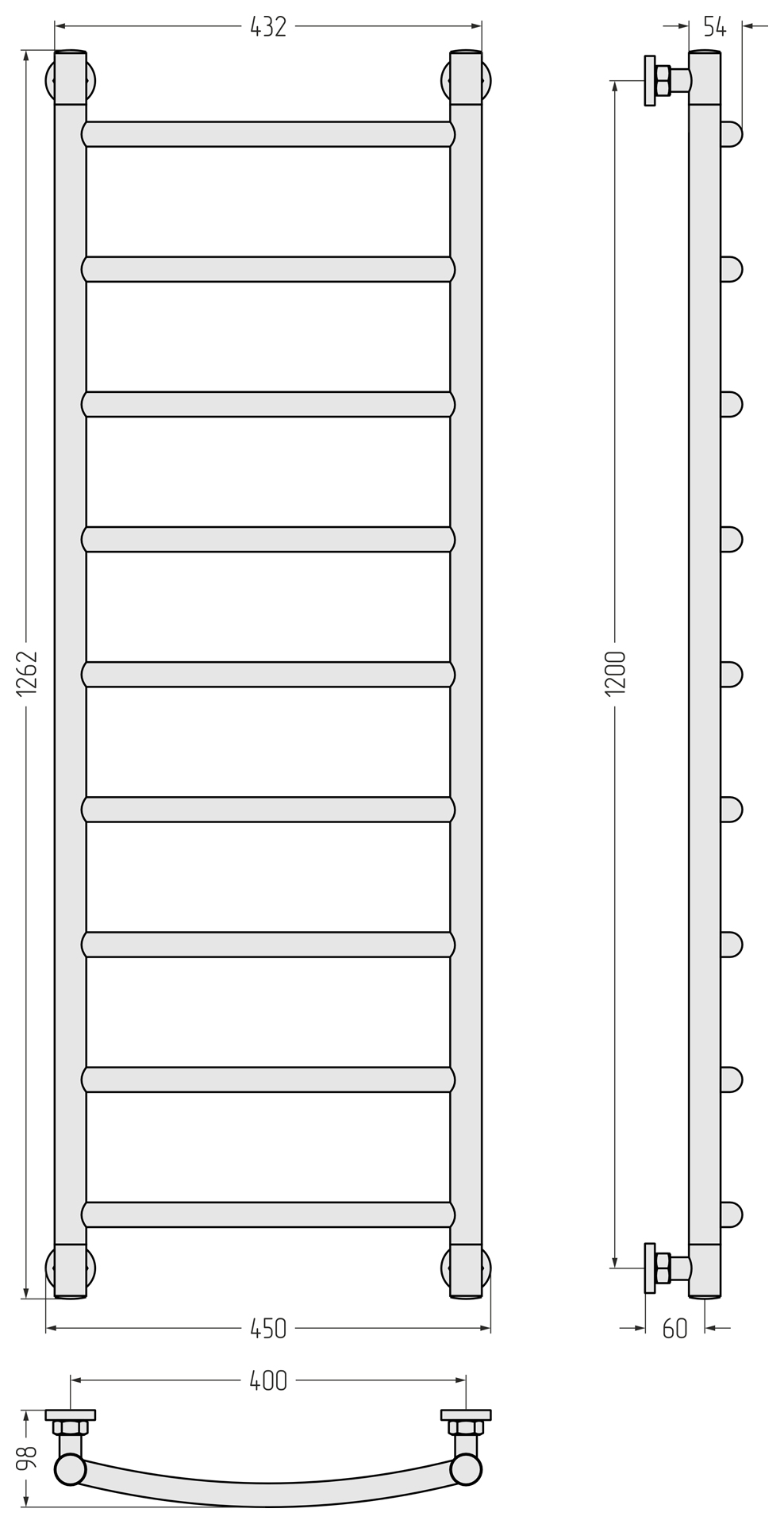 Полотенцесушитель водяной Сунержа Галант 1200x400 матовый черный (31-0200-1240)