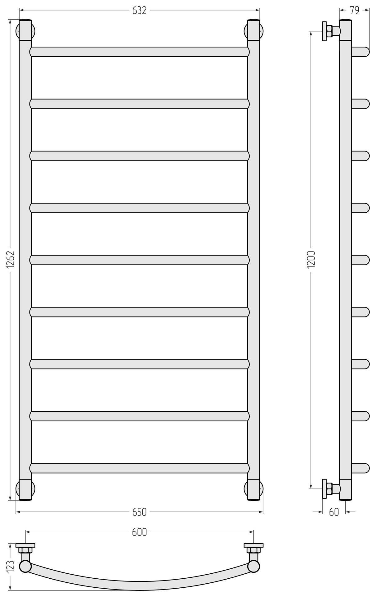 Полотенцесушитель водяной Сунержа Галант 1200x600 матовый черный (31-0200-1260)