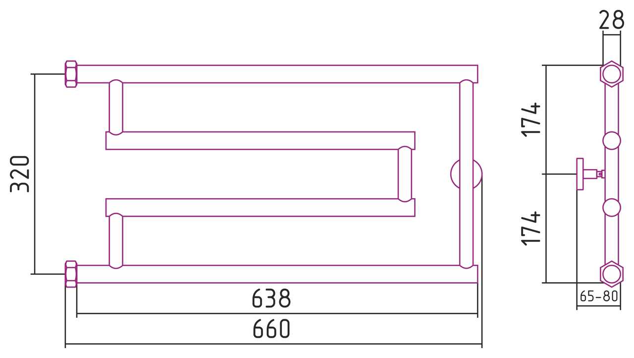 Полотенцесушитель водяной Сунержа High-Tech model G+ 320х650 хром (00-4051-3265)