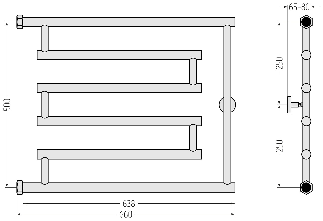 Полотенцесушитель водяной Сунержа High-Tech model L+ 500x650 матовый белый (30-4052-5065)