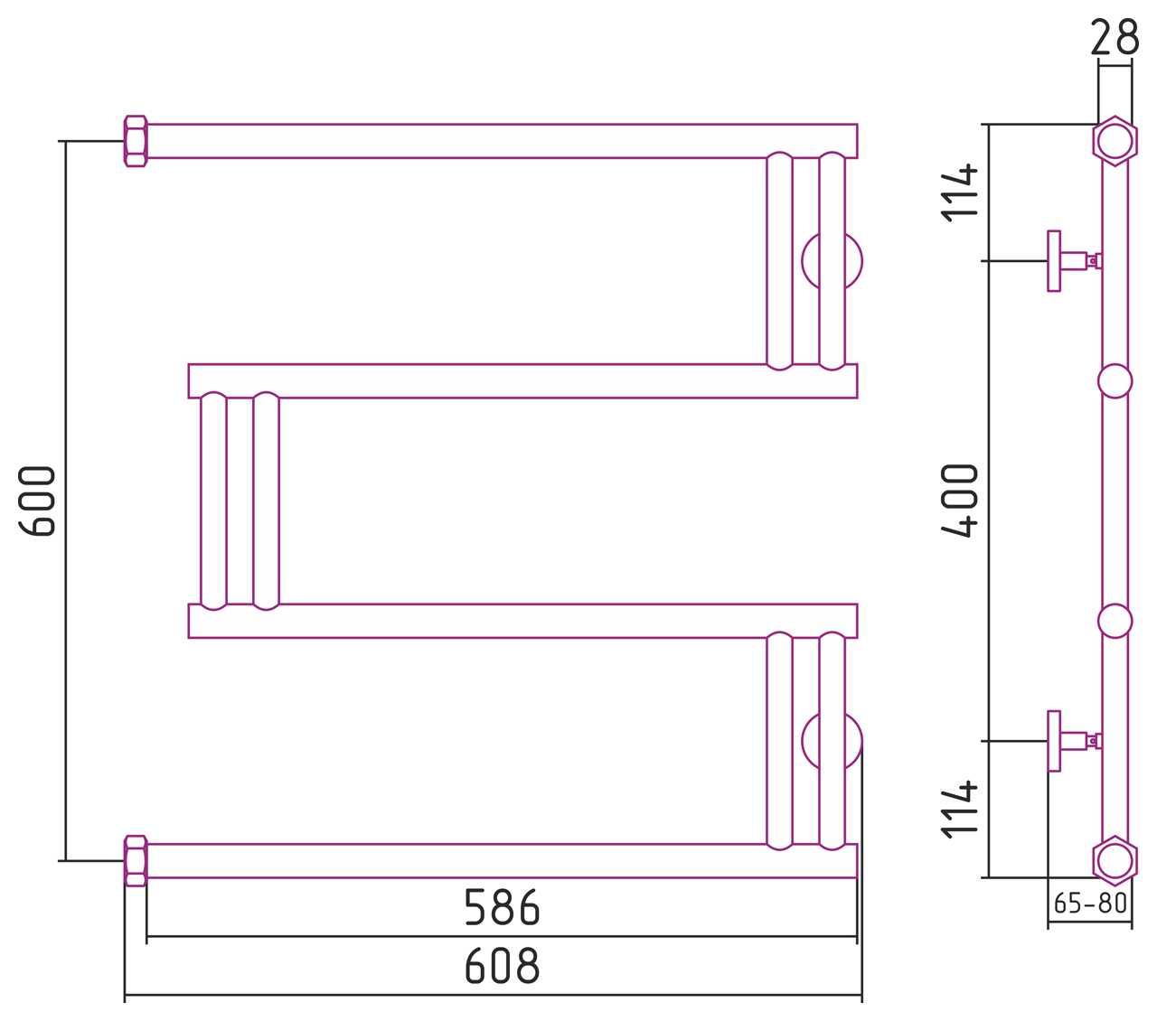 Полотенцесушитель водяной Сунержа High-Tech model M+ 600х600 хром (00-4050-6060)