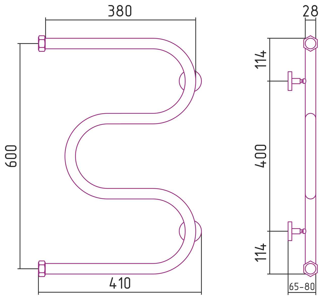 Полотенцесушитель водяной Сунержа М-образный+ 600х400 белый (12-4007-6040)