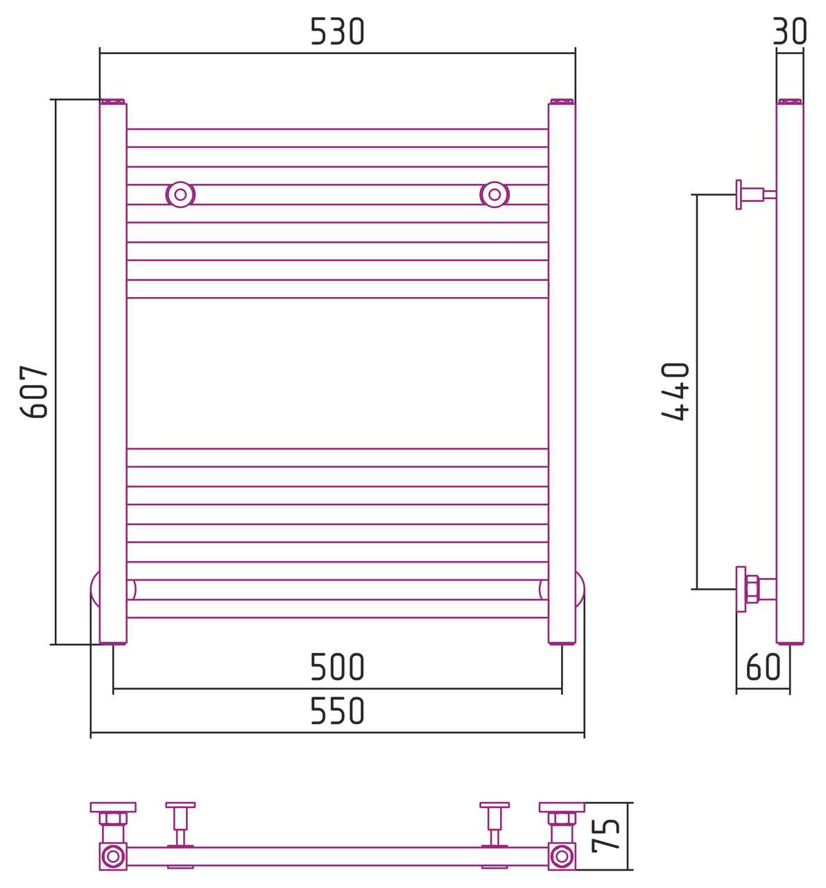 Полотенцесушитель водяной Сунержа Модус 600х500 хром (00-0250-6050)