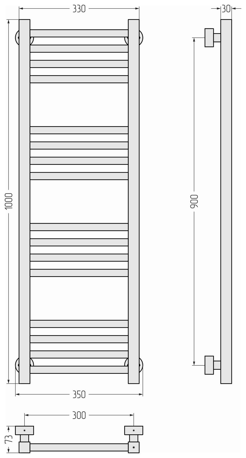 Полотенцесушитель водяной Сунержа Модус Pro 1000x300 матовый черный (31-0450-1030)