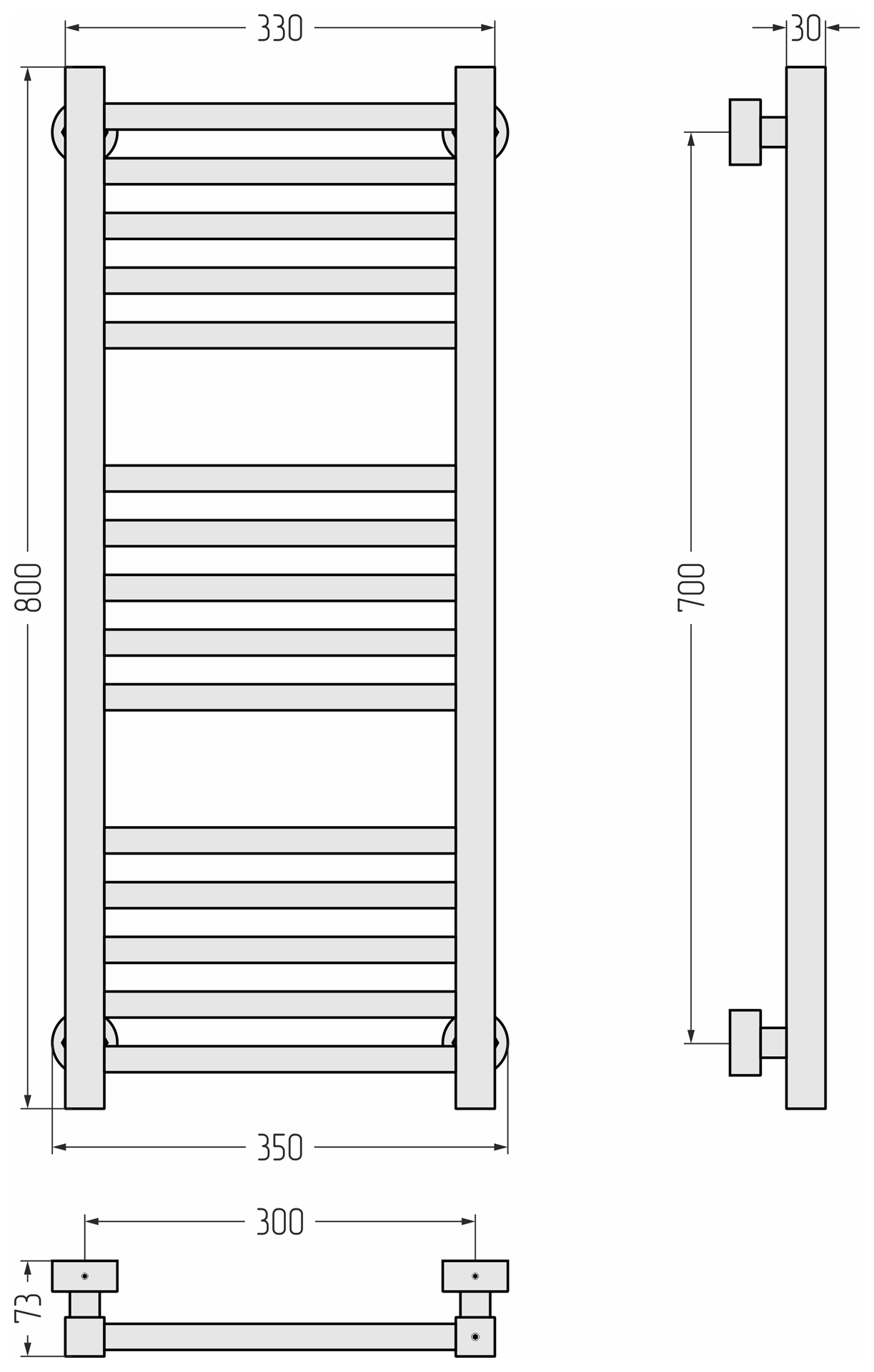 Полотенцесушитель водяной Сунержа Модус Pro 800x300 матовый белый (30-0450-8030)