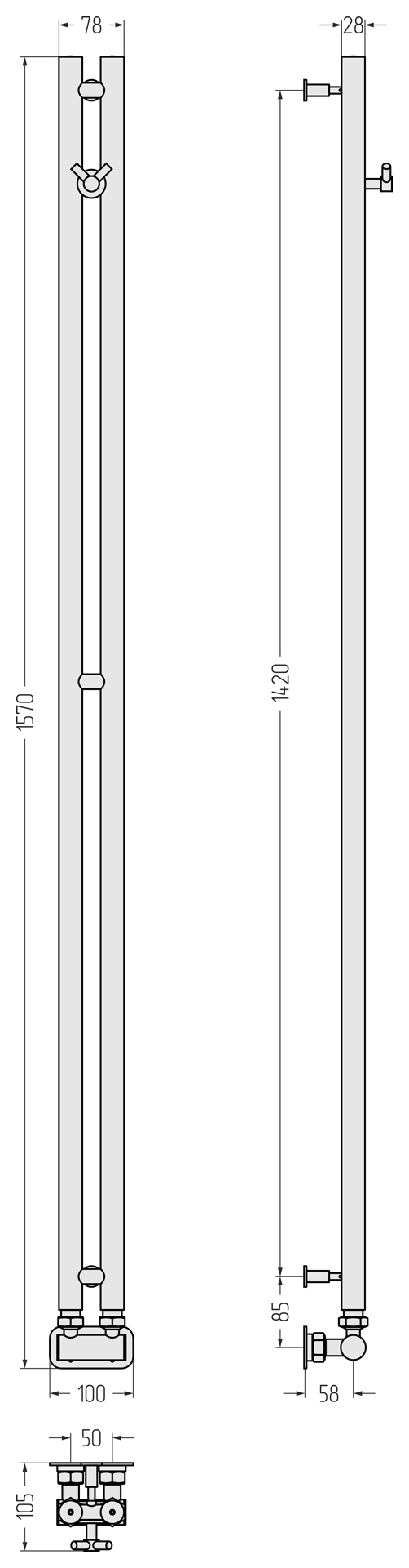 Полотенцесушитель водяной Сунержа Нюанс EU50+ 1545x50 матовый черный (31-0212-1545)