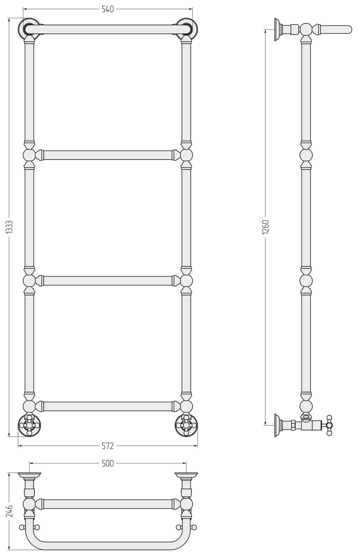 Полотенцесушитель водяной Сунержа Ренессанс 1260x500 матовый черный (31-0281-1250)