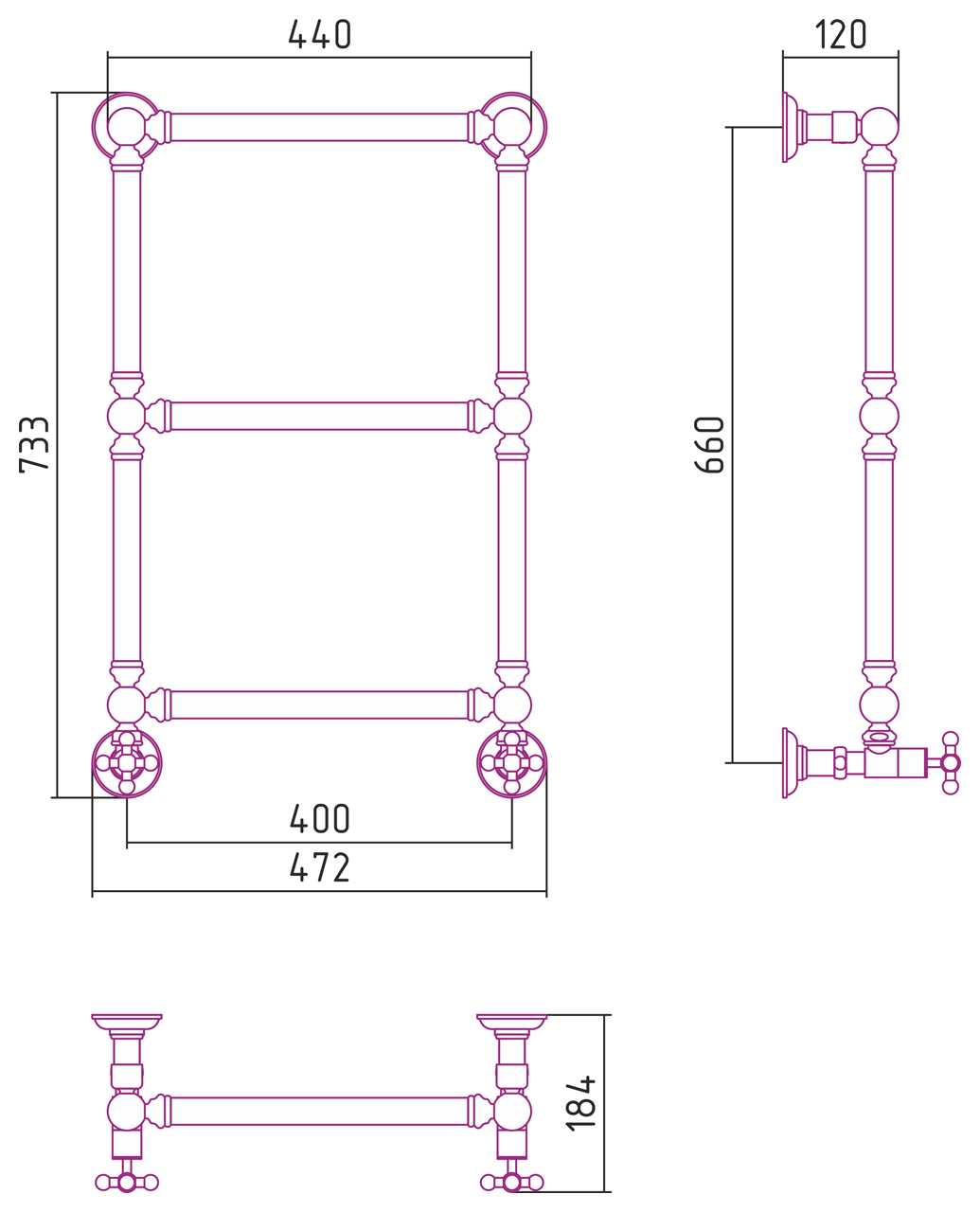 Полотенцесушитель водяной Сунержа Ренессанс 1304 660х400 золотой (03-0280-6640)