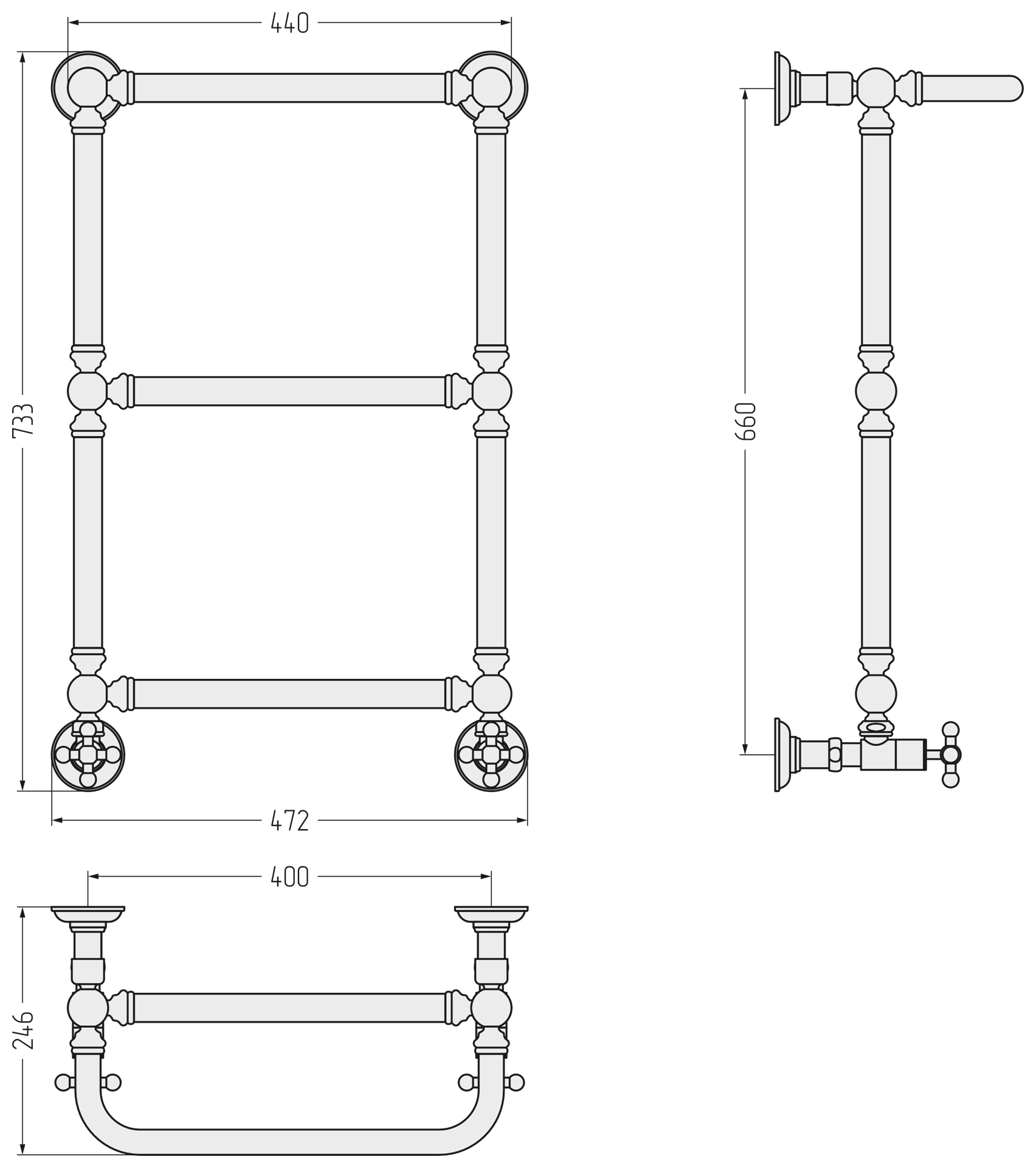 Полотенцесушитель водяной Сунержа Ренессанс 660x400 матовый черный (31-0281-6640)