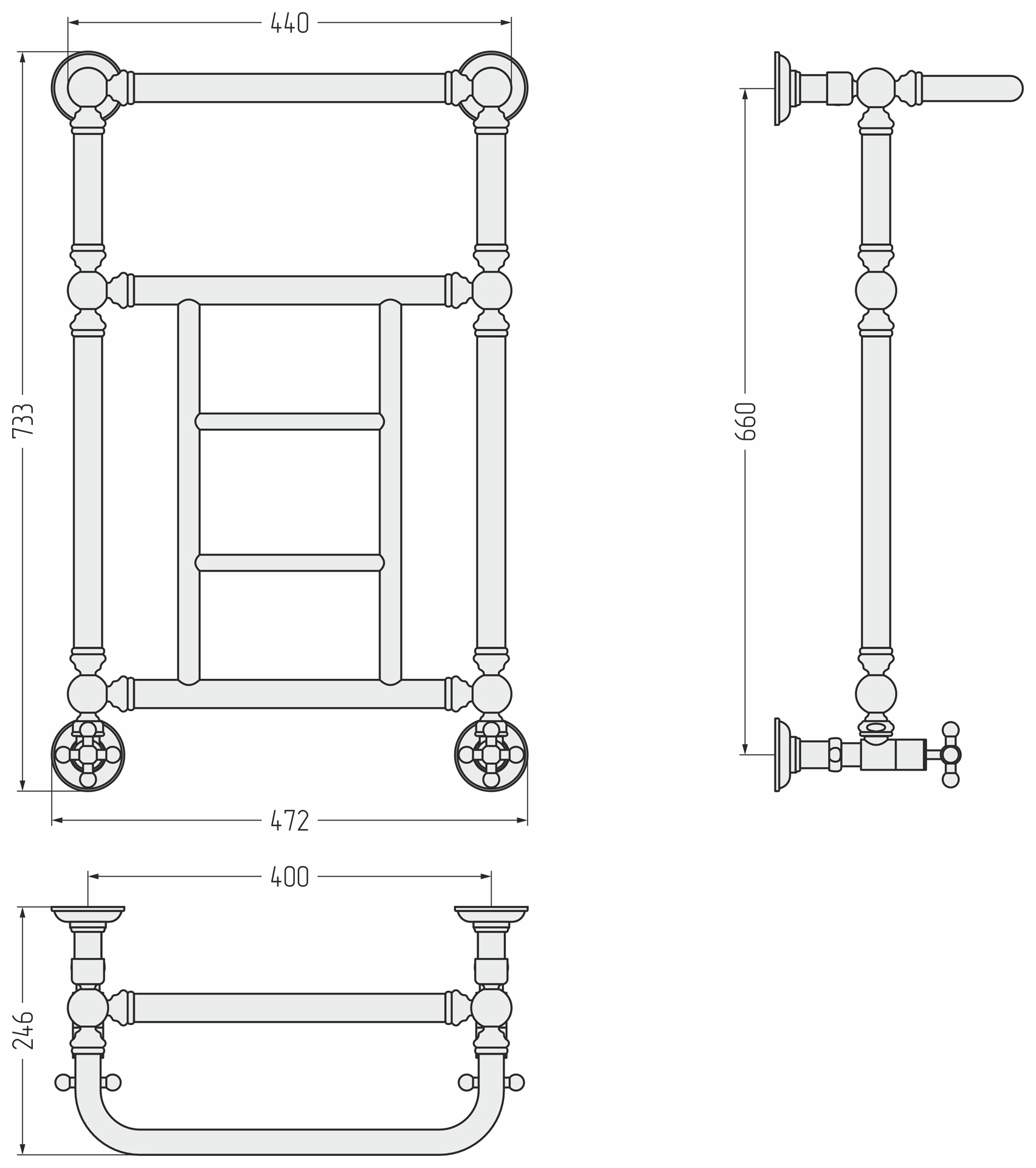 Полотенцесушитель водяной Сунержа Ренессанс 660x400 матовый черный (31-0282-6640)