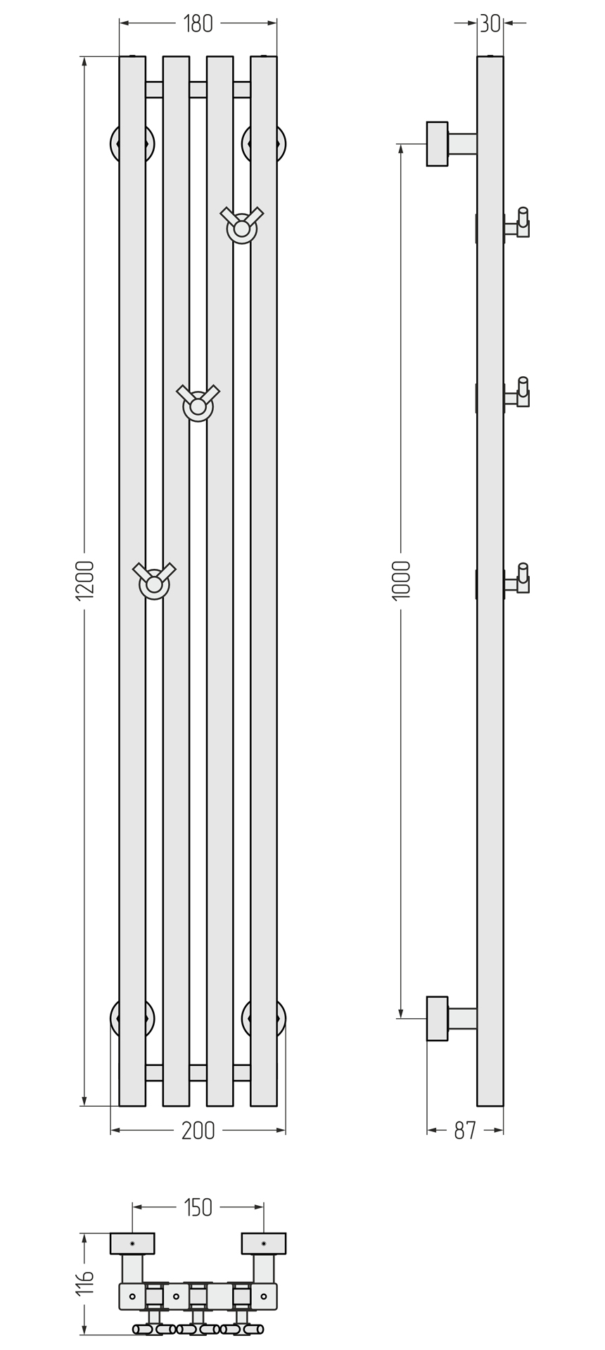 Состав поставки: полотенцесушитель, спускной клапан, отражатели, эксцентрики и опоры кронштейнов, комплект прокладок, шестигранные ключи, дюбели и саморезы
