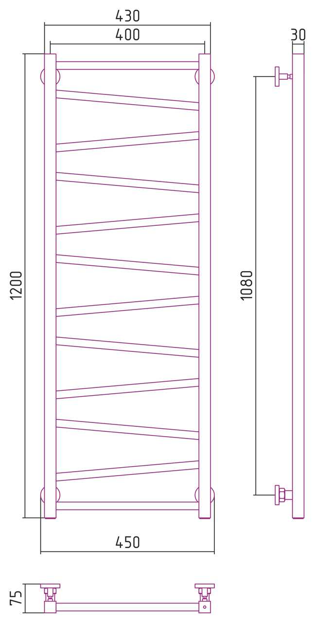 Комплектация: Полотенцесушитель -1 шт., носик 3/4" н/г - 2 шт., заглушка для коллектора - 2 шт., спускной клапан - 1 шт., силиконовая прокладка G 3/4" - 2 шт., отражатель - 2 шт., эксцентрик G 1/2"х3/4" - 2 шт., ключ ШГ №12 - 1 шт., ключ ШГ №3 - 1 шт., ключ ШГ 2,5 для кронштейна - 1 шт., кронштейн телескопический - 2 шт, паспорт, упаковка.