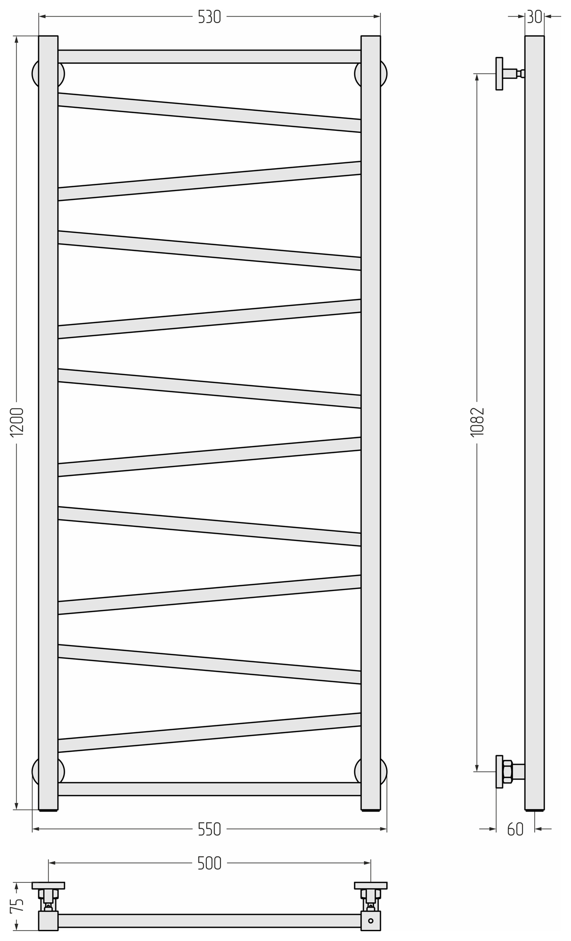 Полотенцесушитель водяной Сунержа Сирокко 1200x500 матовый черный (31-0253-1250)