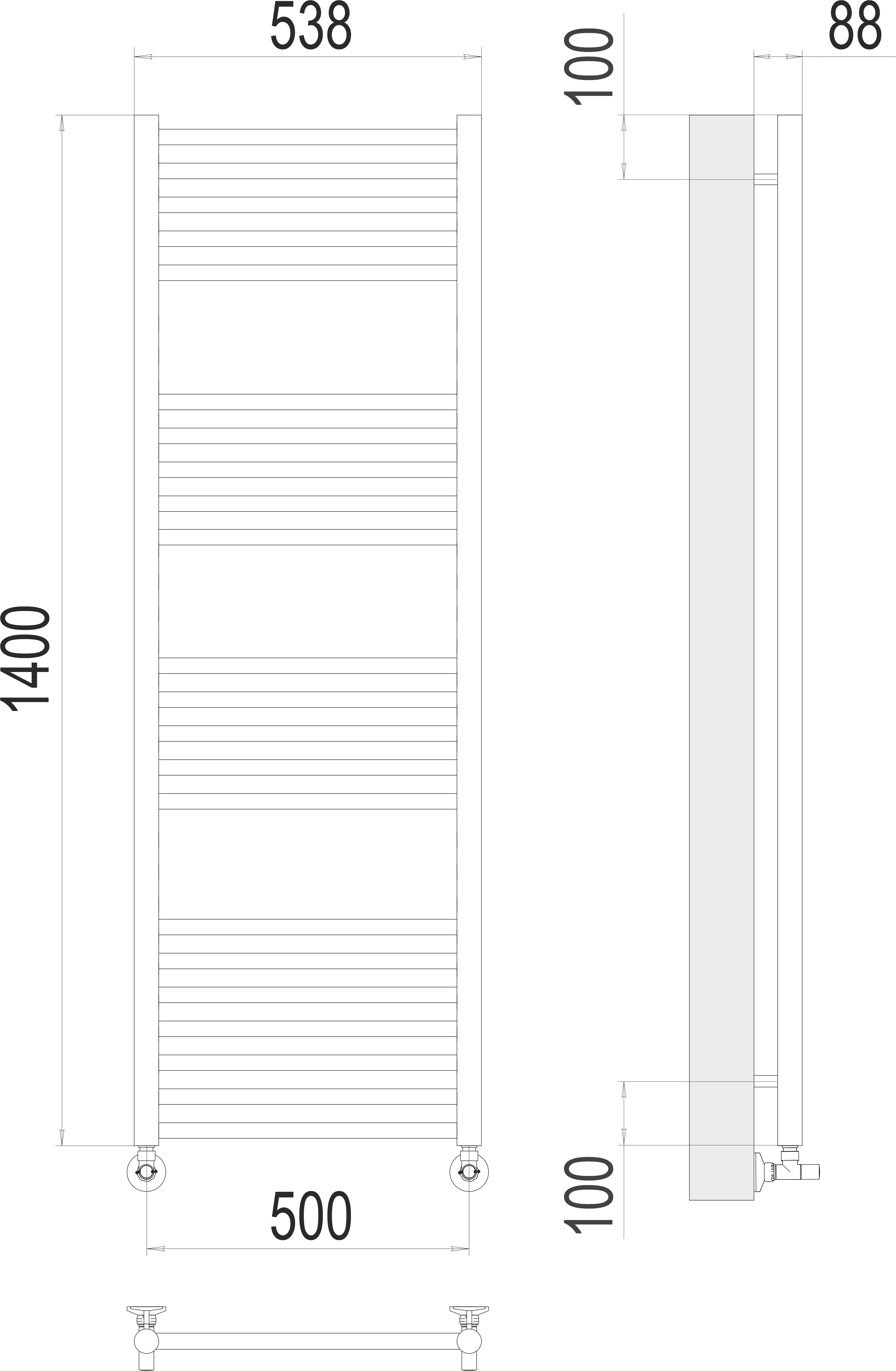 Полотенцесушитель водяной Terminus Альба Lux П22 500x1400 7-5-5-5 xром