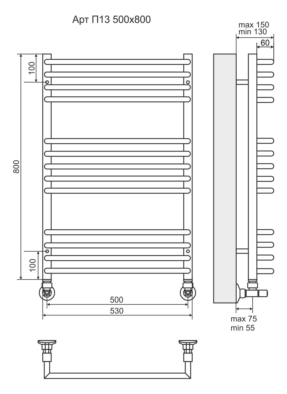Полотенцесушитель водяной Terminus Арт Lux П13 500x800 4-5-4 xром