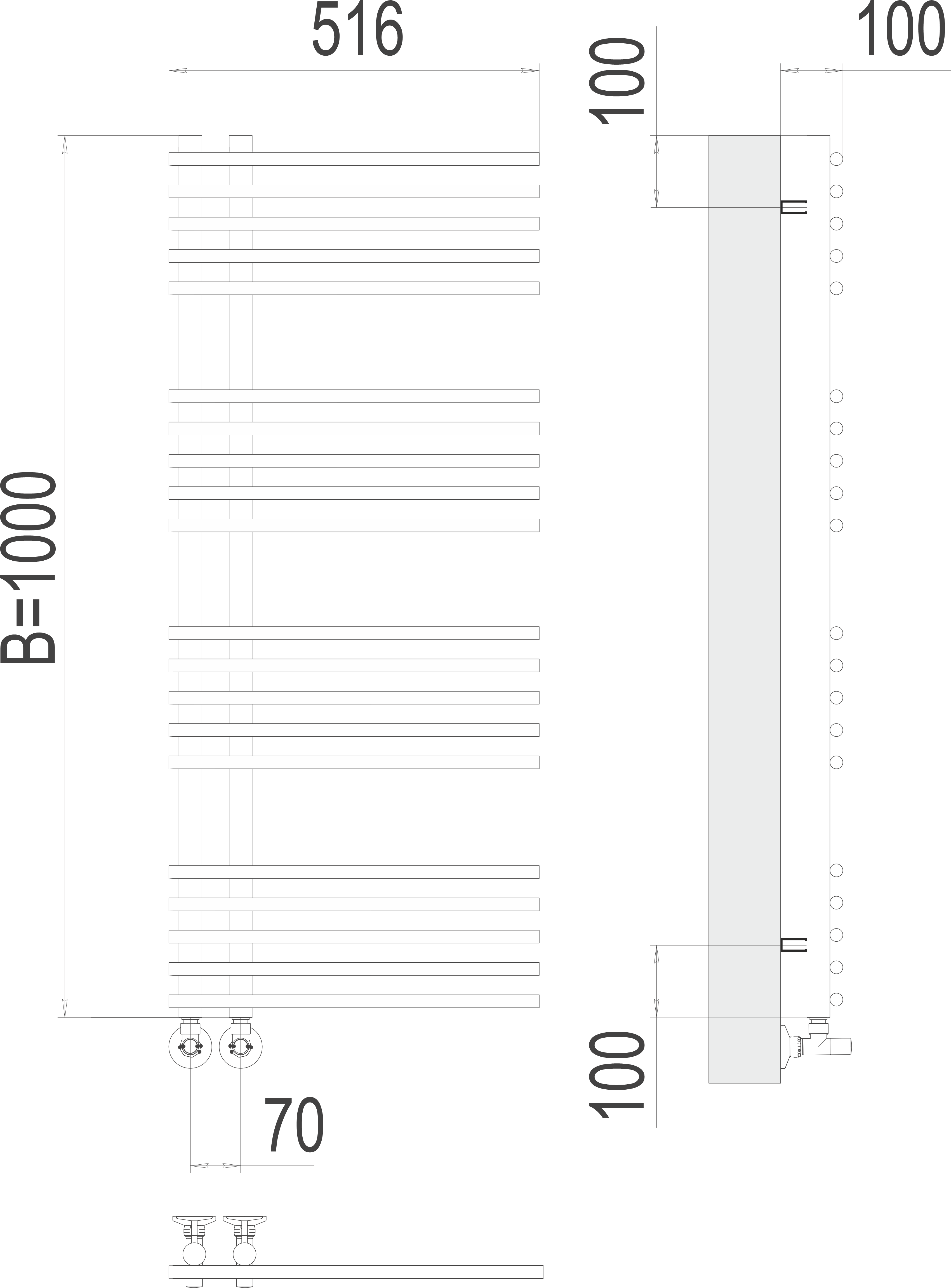 Полотенцесушитель водяной Terminus Астра Lux П20 70x1000 5-5-5-5 xром