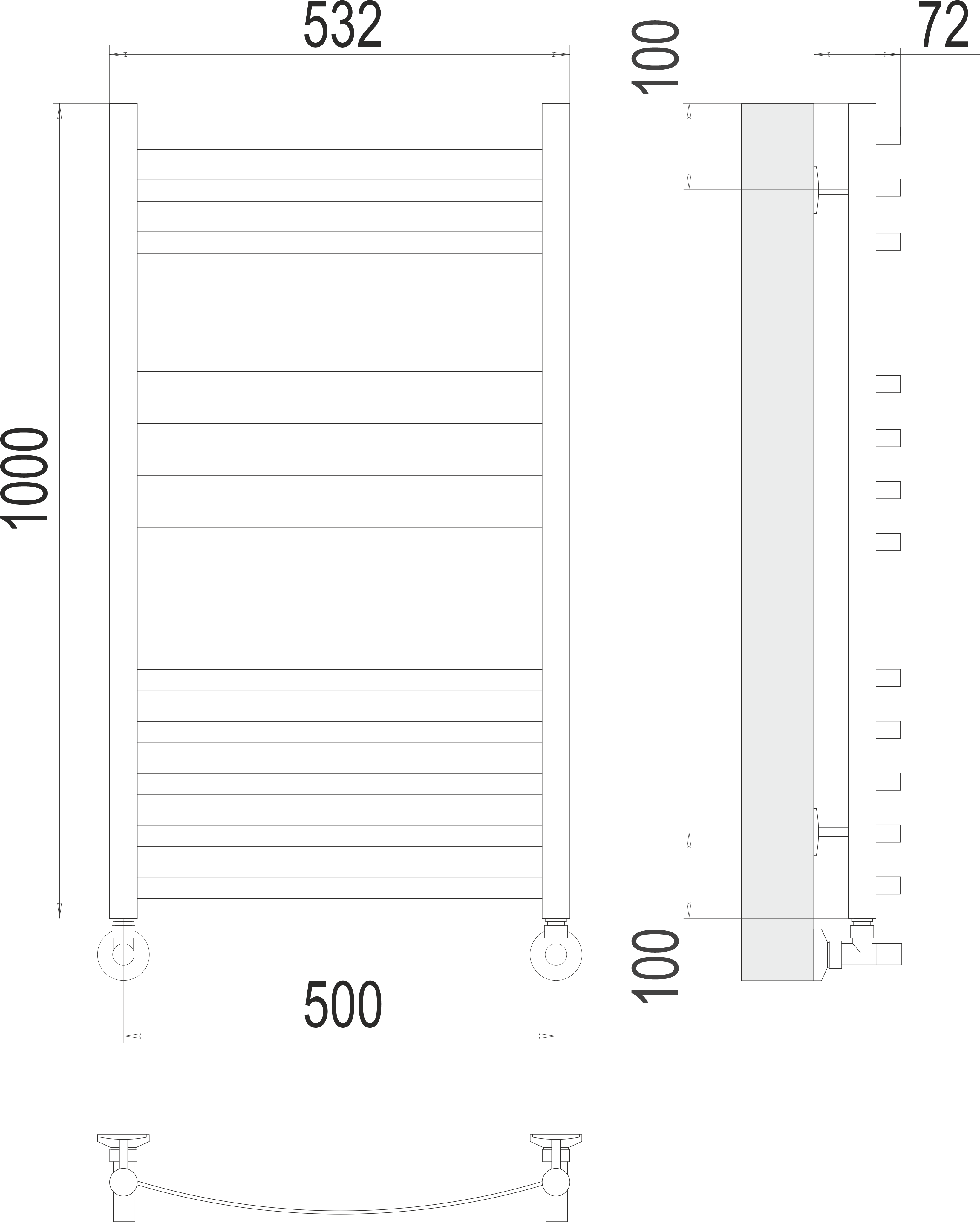 Комплектация: Полотенцесушитель, заглушка 1шт, Кран Маевского 1шт, телескопическое крепление 4шт., эксцентрик 3/4"x1/2" 2шт., отражатель 3/4" 2шт., угловое соединение со сгоном 3/4" x1/2"ГШ 2шт.