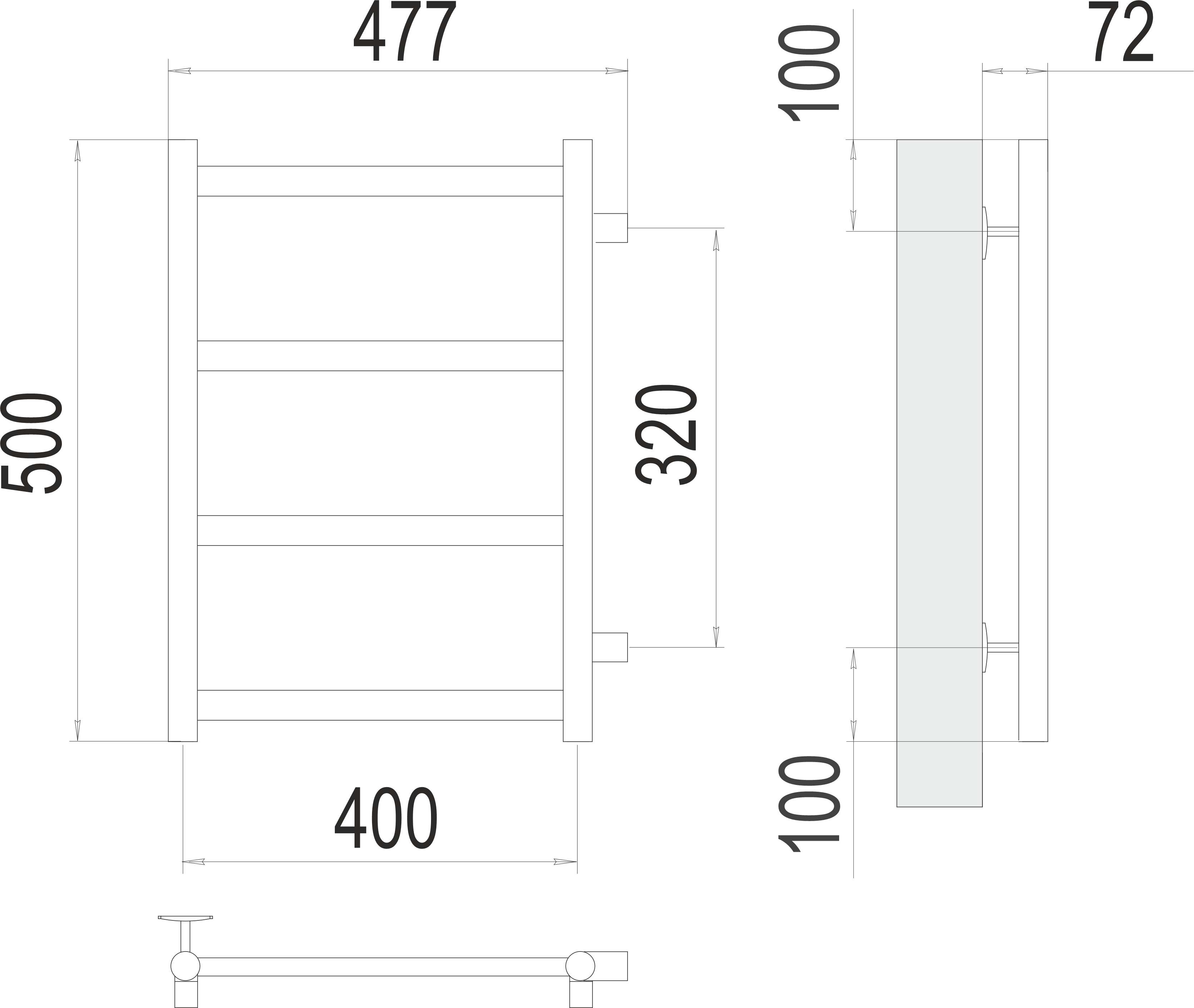 Комплектация: Полотенцесушитель, заглушка 1шт, Кран Маевского 1шт, телескопическое крепление 4шт., эксцентрик 3/4"x1/2" 2шт., отражатель 3/4" 2шт., угловое соединение со сгоном 3/4" x1/2"ГШ 2шт.