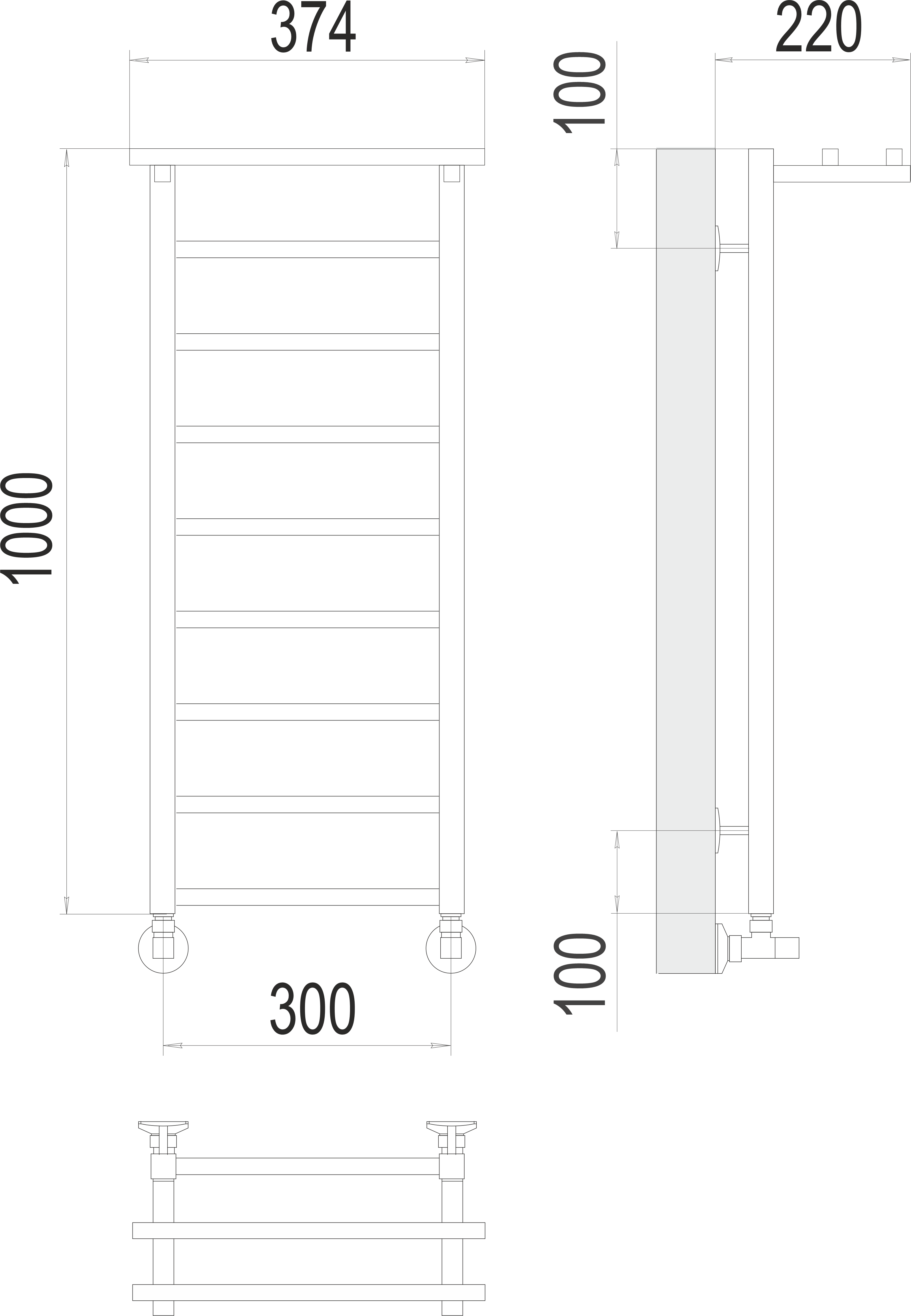 Полотенцесушитель водяной Terminus Контур с/п standart П9 300x1000 xром