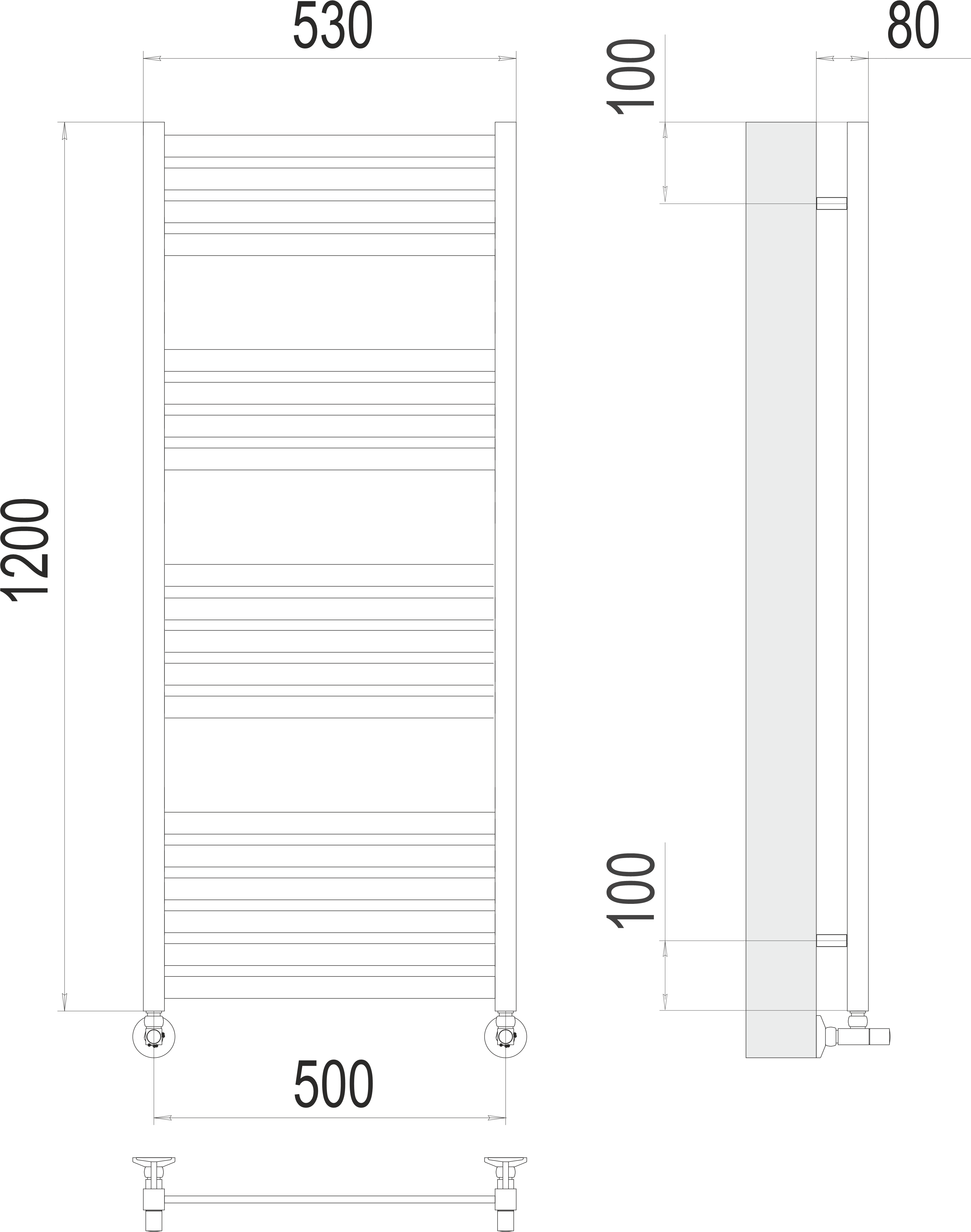 Полотенцесушитель водяной Terminus Тоскана Lux П19 500x1200 6-5-4-4 xром