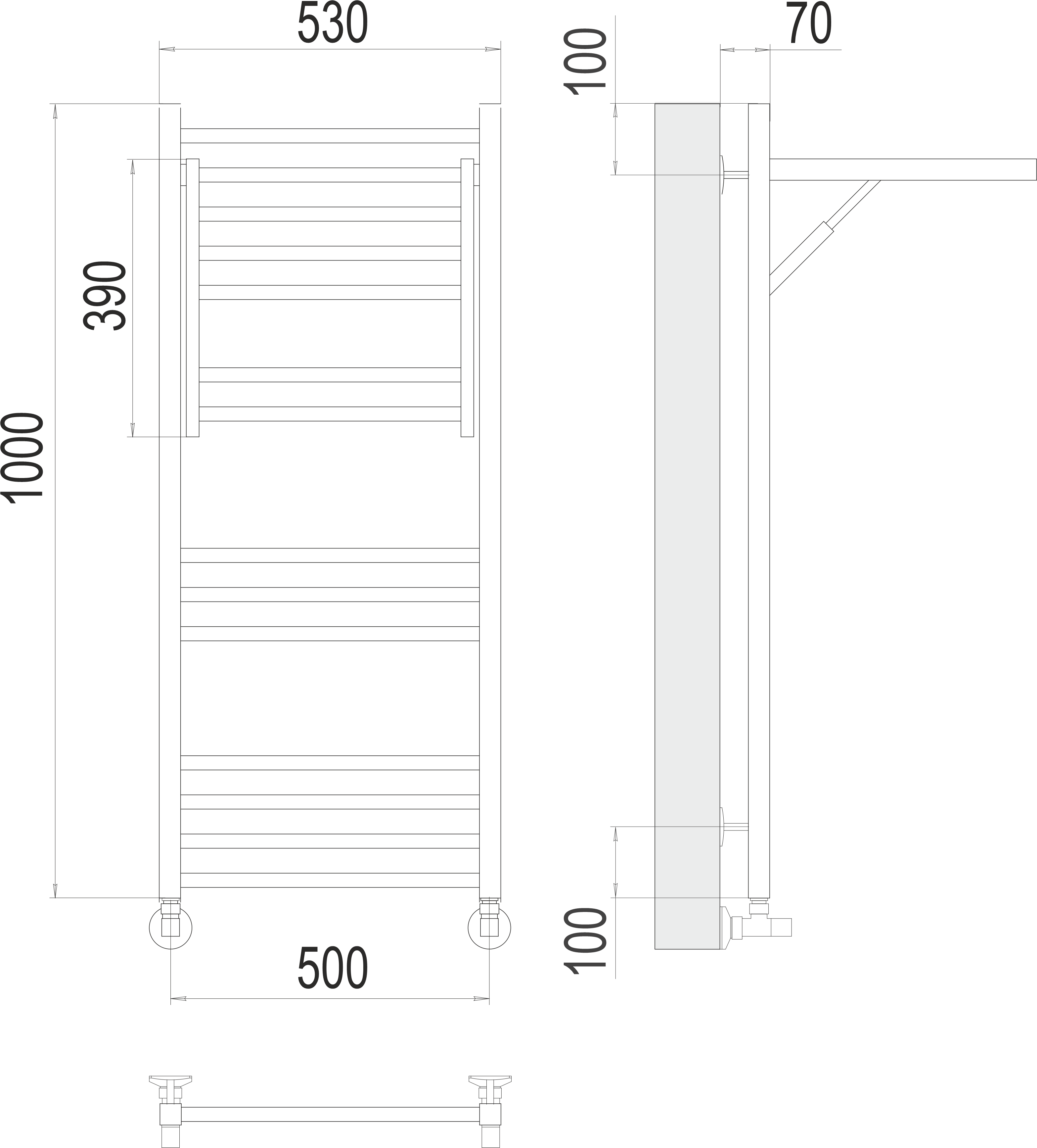 Полотенцесушитель водяной Terminus Валенсия standart П14 500x1000 4-3-2-5