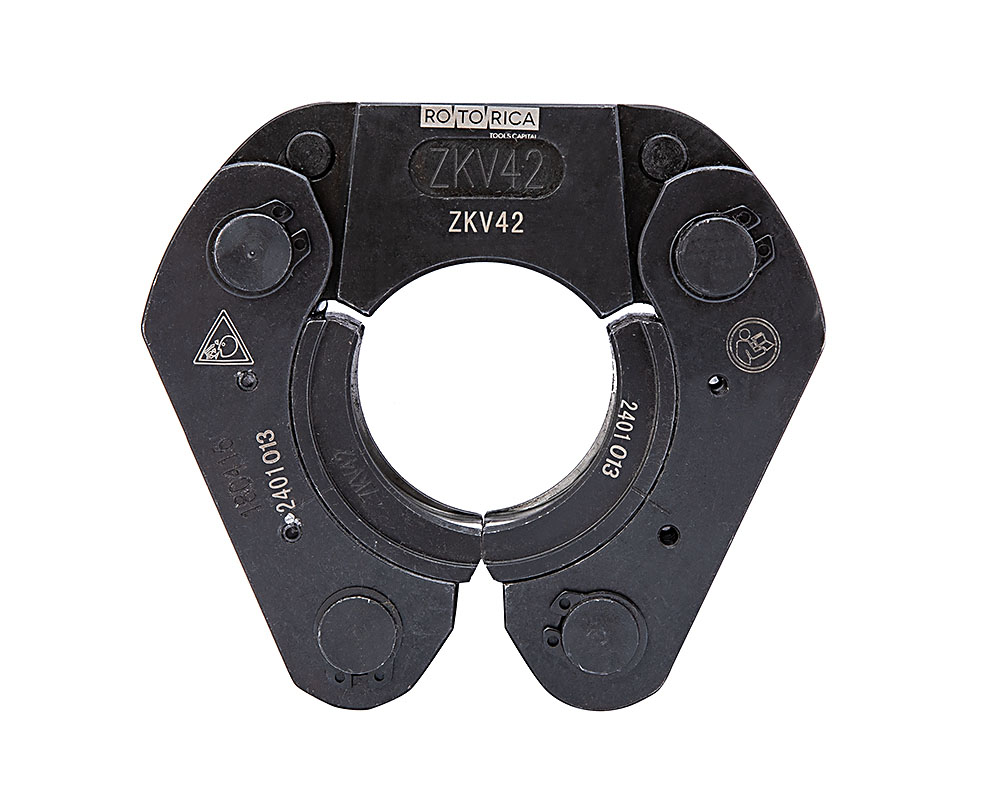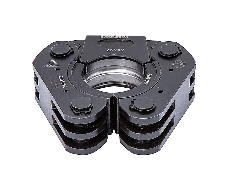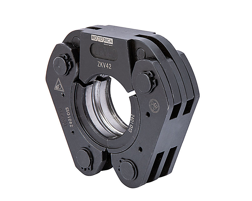 Пресс-кольцо Rotorica Basic V42 предназначено для обжатия радиальных пресс-фитингов тонкостенных медных, нержавеющих и стальных труб с профилем V диаметром 42 мм.
