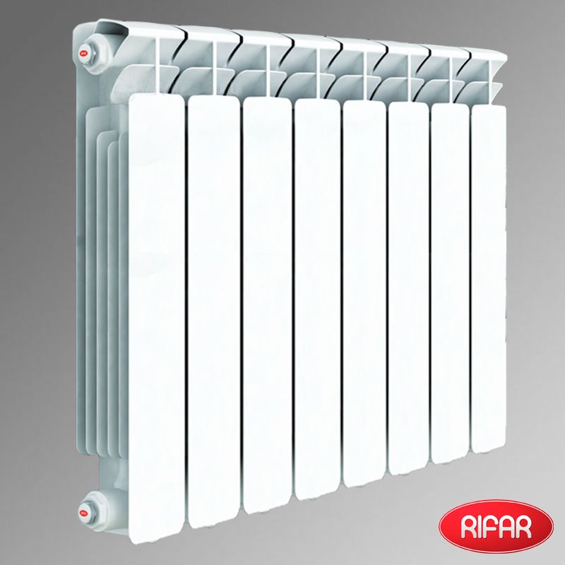 Радиаторы серии Rifar Base Ventil представлены на российском рынке тремя моделями с межосевым расстоянием 500, 350 и 200 мм. Устройство радиаторов этой серии основано на специальной конструкции частей соединяемых секций и параметрах силиконовой прокладки новым способом герметизации межсекционного соединения, существенно повышающим надежность сборки отопительного прибора. Секция радиатора этой серии состоит из стальной трубы, залитой под высоким давлением алюминиевым сплавом, обладающим высокими прочностными и отличными литейными свойствами. Полученное в результате монолитное изделие с тонким оребрением обеспечивает эффективную теплоотдачу при максимальном запасе прочности. Главной особенностью радиаторов этой серии - является нижнее подключение к системе отопления, отлично подойдет для поквартирного отопления с центральным водоснабжением. В качестве присоединительной арматуры можно использовать как узел нижнего подключения со стандартным межосевым расстоянием 50 мм, так и одиночные присоединительные вентили с учетом типа и конфигурации системы отопления. В качестве теплоносителя для всех моделей Rifar Base Ventil допускается использование только специально подготовленной воды, согласно п. 4.8. СО 153 – 34.20.501 - 2003 «Правил технической эксплуатации электрических станций и сетей РФ». В качестве присоединительной арматуры можно использовать как узел нижнего подключения со стандартным межосевым расстоянием 50 мм, так и одиночные присоединительные вентили с учетом типа и конфигурации системы отопления. Не допускается использование антифризов. Подтверждая высокие конструктивные характеристики своих радиаторов и жесткий контроль качества, компания «РИФАР» дает гарантию на радиаторы этой серии сроком 10 лет и в то же время гарантирует их бесперебойную работу в течение 25 лет с момента установки при соблюдении правил транспортировки, монтажа и эксплуатации. Вся продукция, производимая компанией «РИФАР», сертифицирована органом по сертификации санитарно-технического и отопительного оборудования «САНРОС» и застрахована ОСАО «ИНГОССТРАХ». Завод-изготовитель протестировал радиаторы с арматурой HERZ и гарантирует работоспособность такого комплекта. Использование в радиаторах Rifar Base Ventil элементов нижнего подключения, не прошедших проверку на заводе-изготовителе, лишает потребителя гарантии производителя. Выпускаются под заказ от 4 до 14 секций. Варианты подключения: снизу слева и снизу справа.