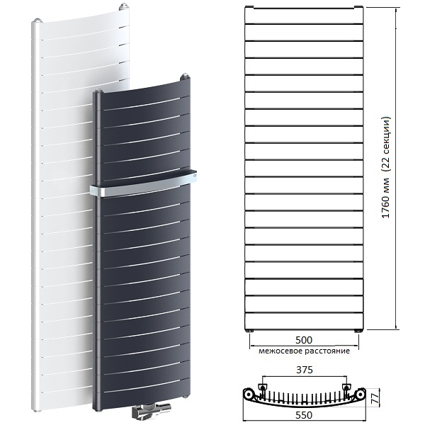 RIFAR CONVEX также легко превратить в полотенцесушитель, для него специально разработан аксессуар – полочка-держатель для полотенец, которую можно установить перед прибором. Она выполнена из полосы нержавеющей стали шириной 40 мм и толщиной 3 мм.