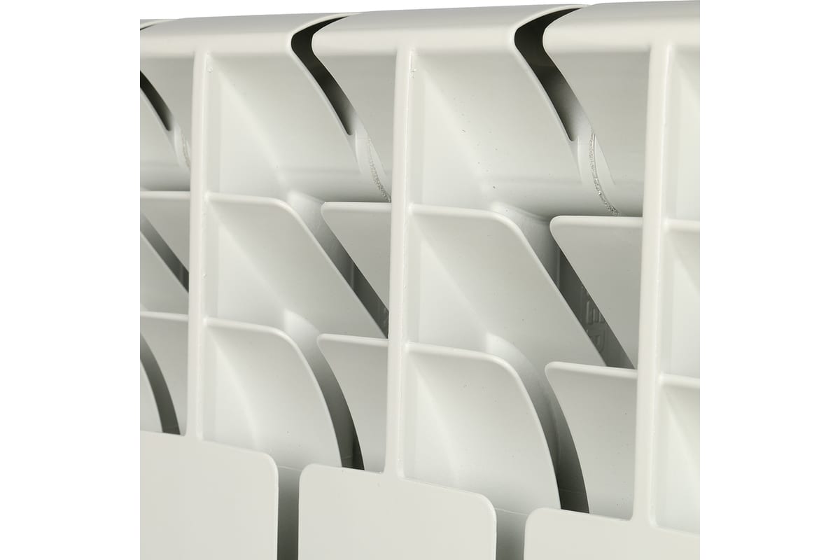 Радиаторы зготавливают из сплавов двух видов. Чтобы теплоноситель свободно протекал по внутренним каналам, они изготавливаются из нержавеющей стали. Снаружи радиаторы “обёрнуты” в корпус из алюминия, который славится хорошим теплообменом и эстетичным внешним видом. За счёт сплава из стали и корпуса из алюминия складывается превосходная теплоотдача и надёжность биметаллических радиаторов. Каналы из стали отлично справляются с щелочной средой и кислотностью теплоносителей отопительных систем многоквартирных домов.