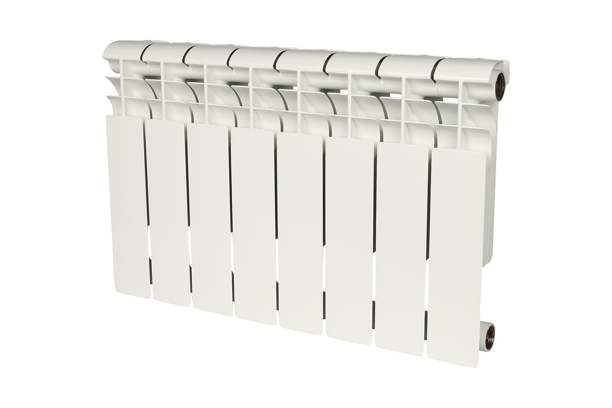Радиаторы зготавливают из сплавов двух видов. Чтобы теплоноситель свободно протекал по внутренним каналам, они изготавливаются из нержавеющей стали. Снаружи радиаторы “обёрнуты” в корпус из алюминия, который славится хорошим теплообменом и эстетичным внешним видом. За счёт сплава из стали и корпуса из алюминия складывается превосходная теплоотдача и надёжность биметаллических радиаторов. Каналы из стали отлично справляются с щелочной средой и кислотностью теплоносителей отопительных систем многоквартирных домов.