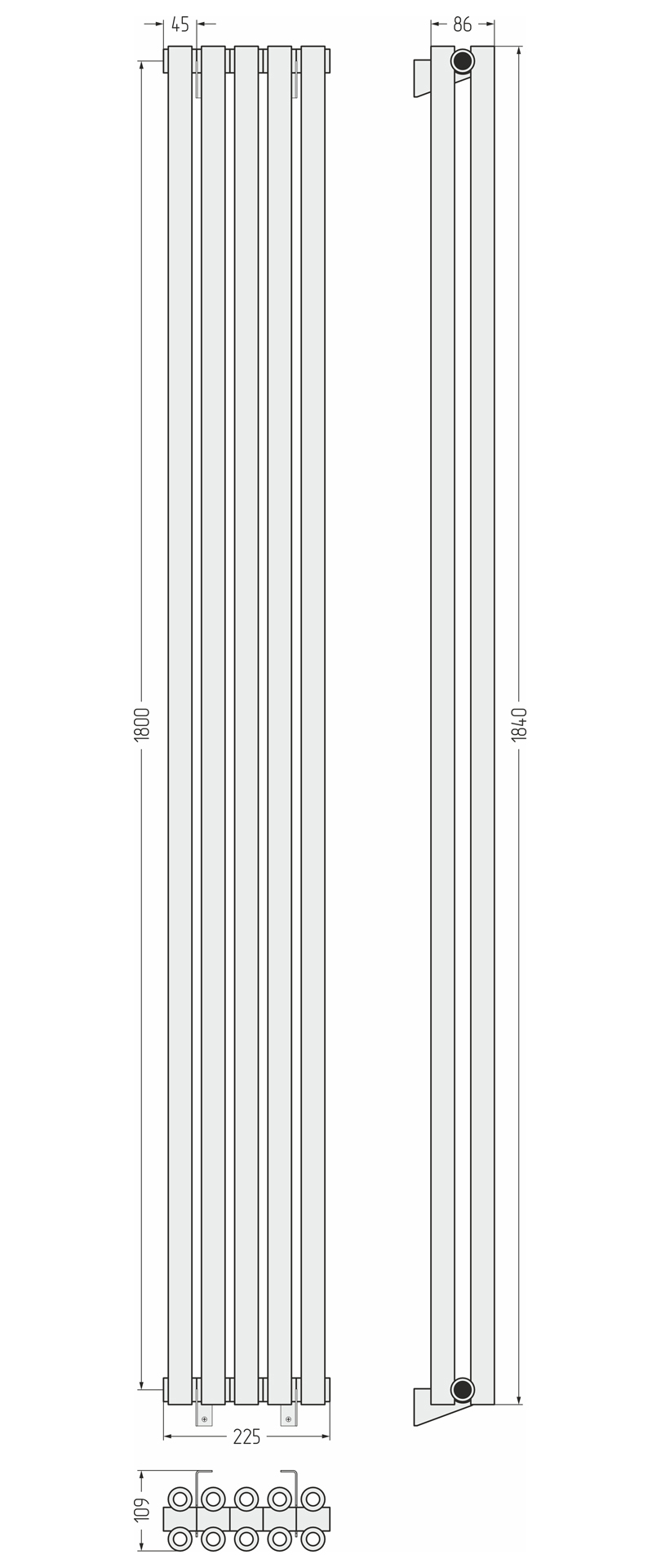 Радиатор стальной Сунержа Эстет 225x1800 5 секций черный матовый (31-0332-1805)