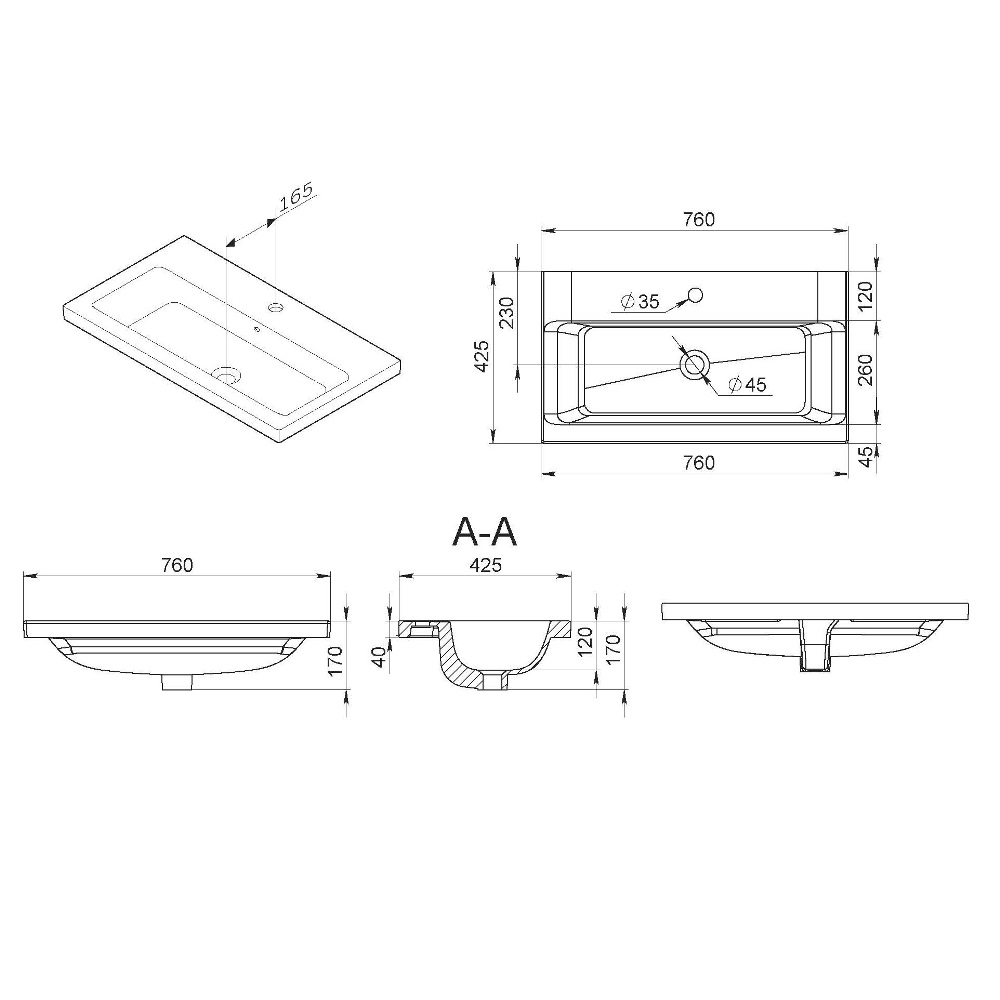 Совместима с тумбой: артикул M90FHX07522BM. Приобретается отдельно.