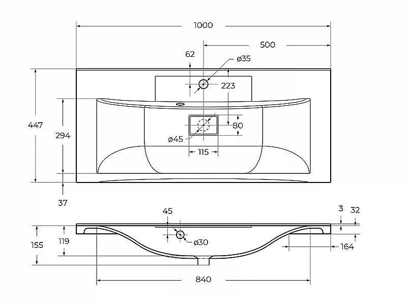 Раковина мебельная BelBagno 100x45 черная матовая (BB100/445-LV-ART-PR-NERO)