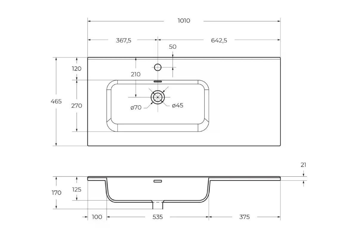 Раковина мебельная BelBagno 101x46,5 левосторонняя белая глянцевая (BB100ETL-L)