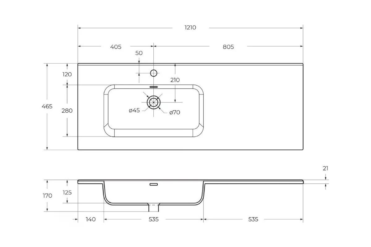 Раковина мебельная BelBagno 121x46,5 левосторонняя белая глянцевая (BB1200ETL-L)