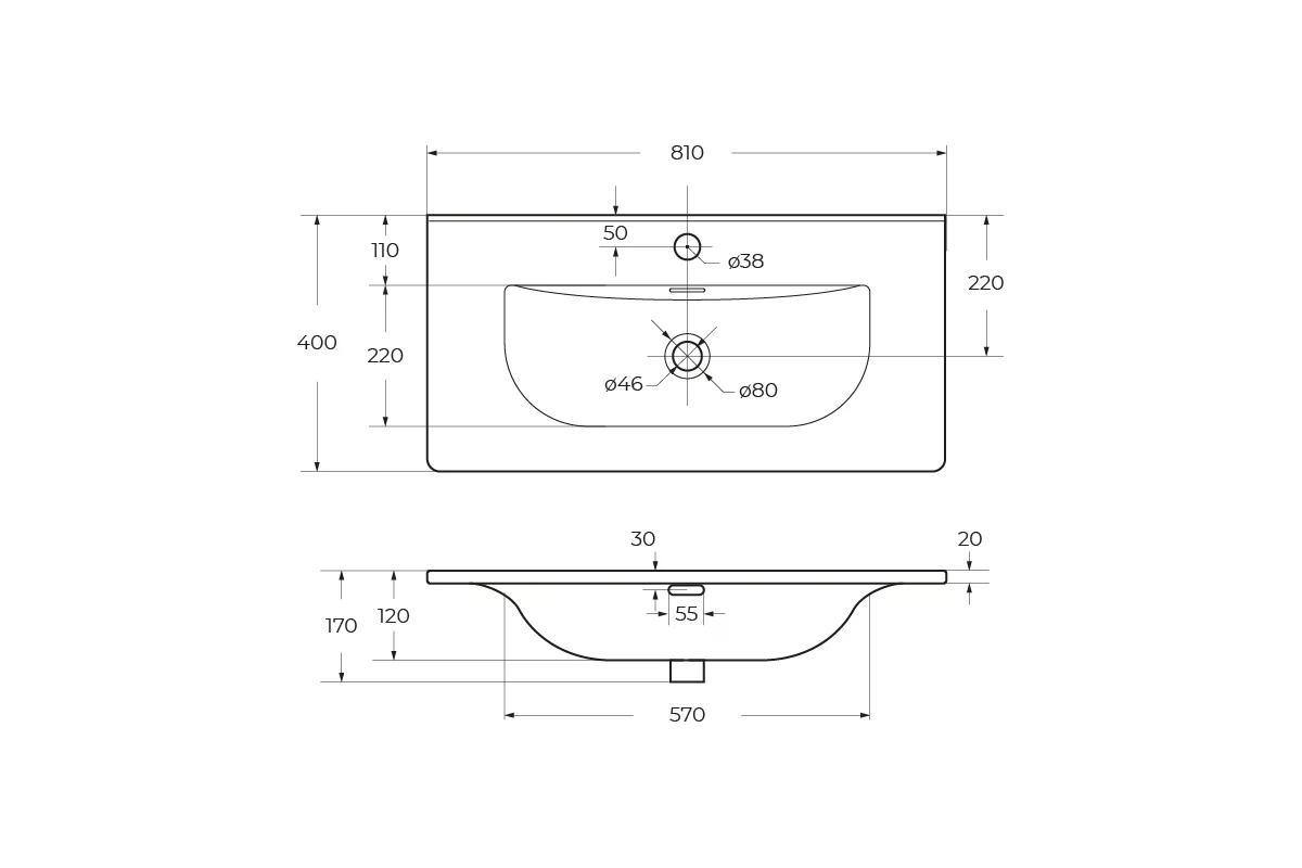 Раковина мебельная BelBagno 81x40 белая глянцевая (BB-8099-3-80)