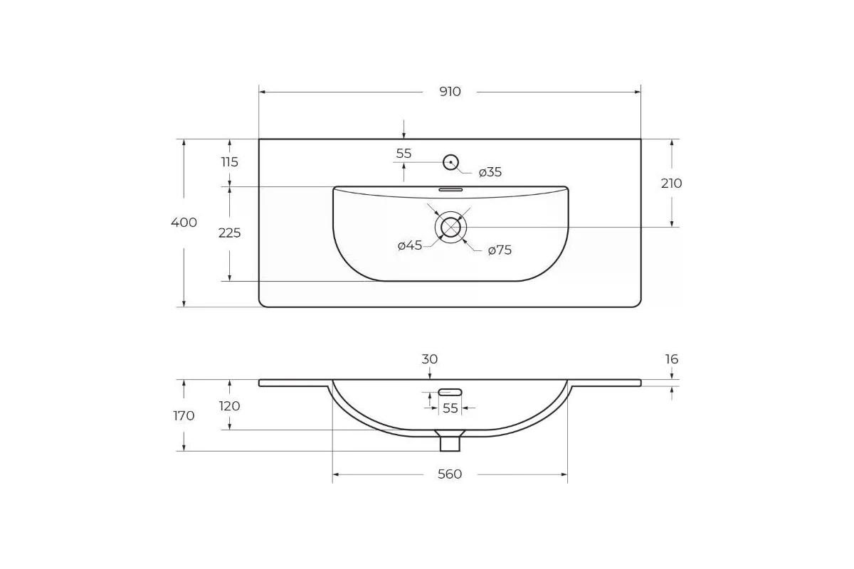 Раковина мебельная BelBagno 91x40 белая глянцевая (BB-8099-3-90)